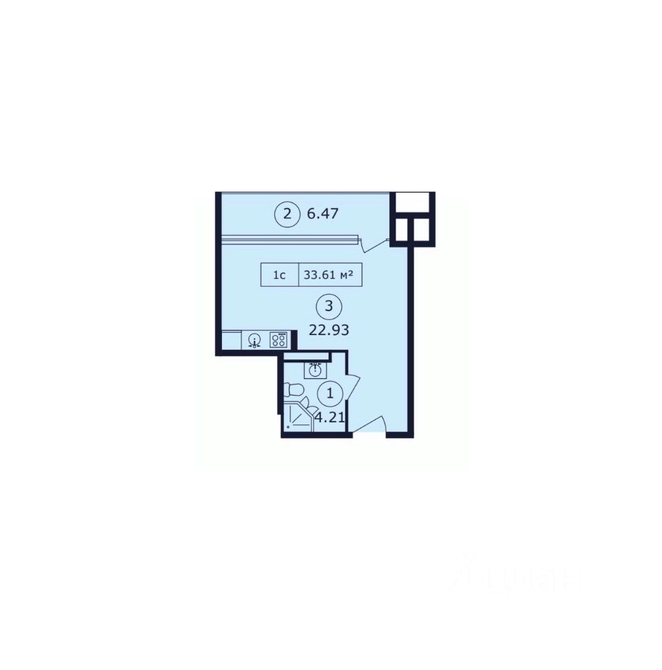 Общая площадь33,61 м2
