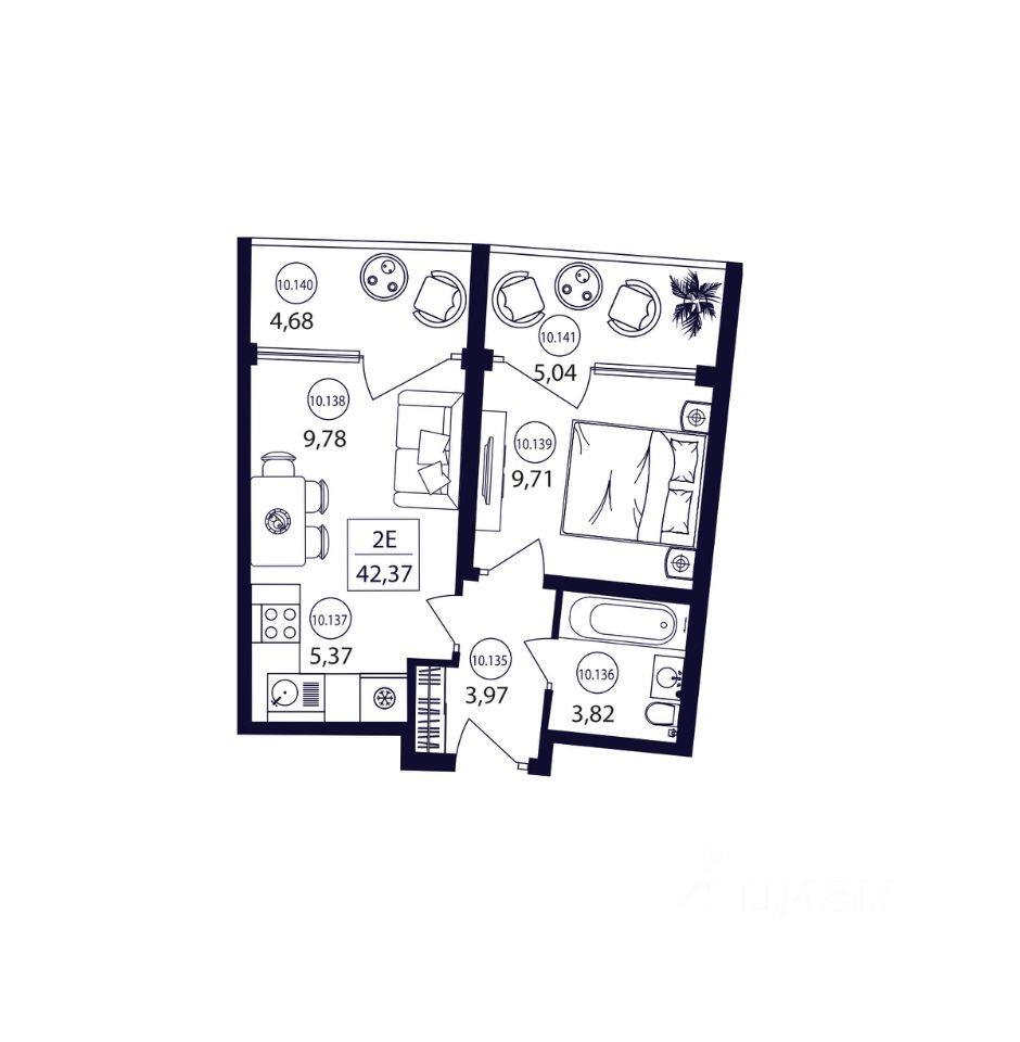 Общая площадь42,37 м2