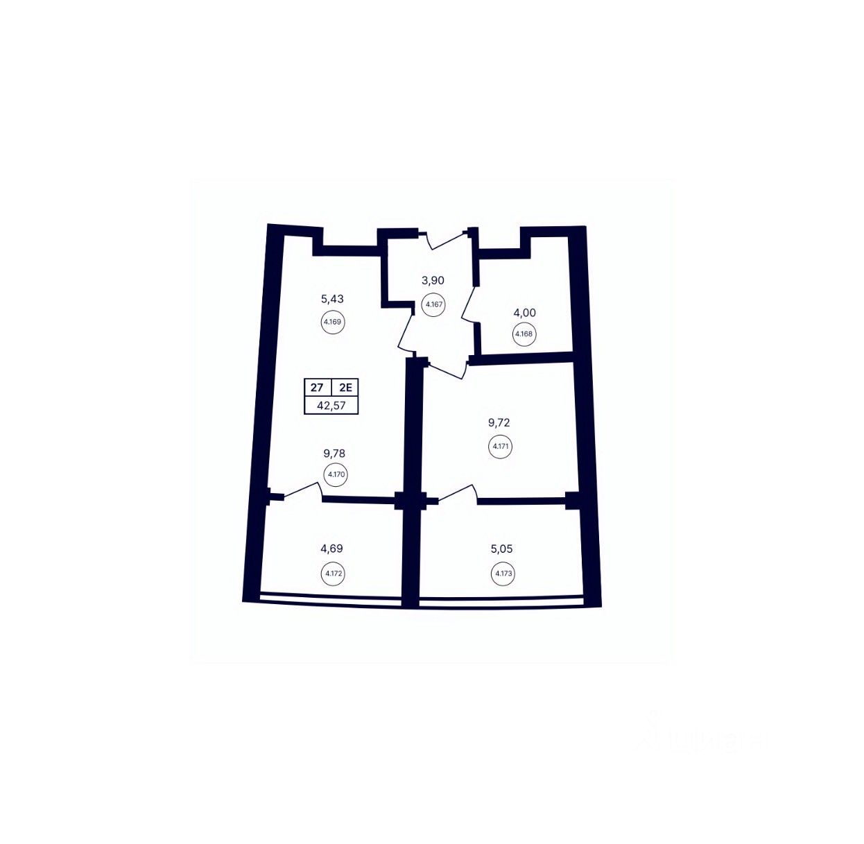 Общая площадь42,57 м2