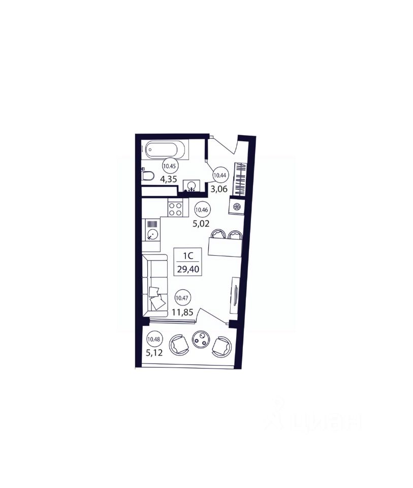 Общая площадь29,4 м2