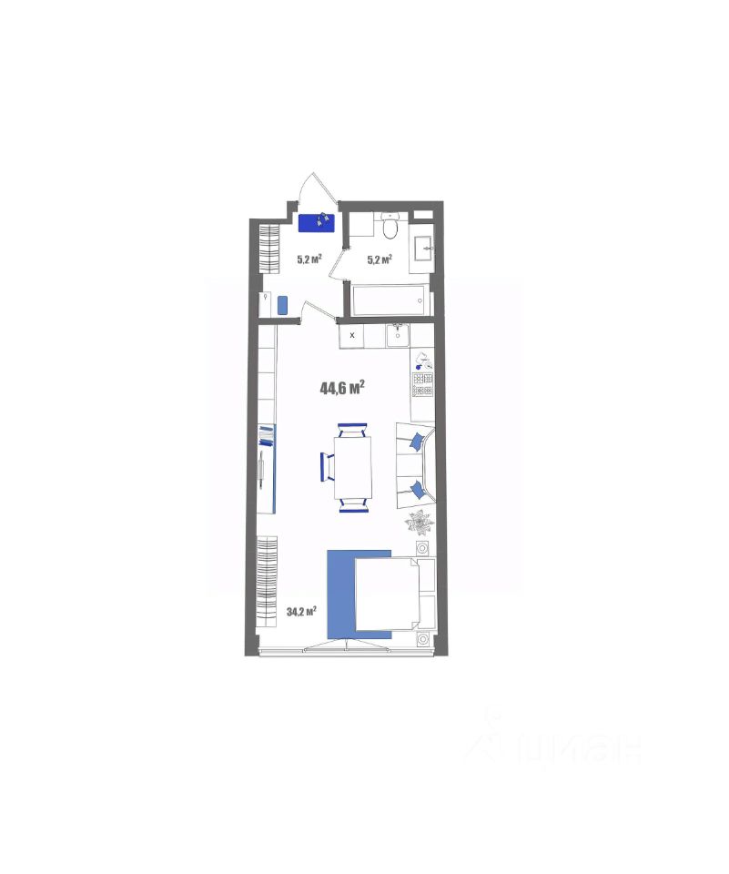 Общая площадь44,6 м2