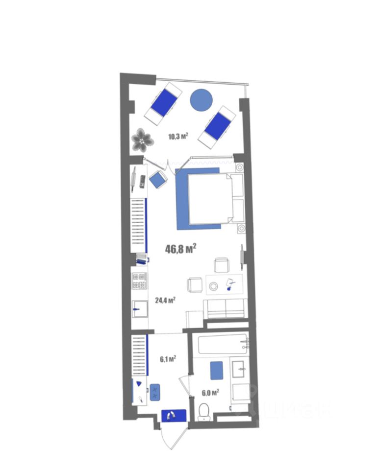 Общая площадь46,8 м2