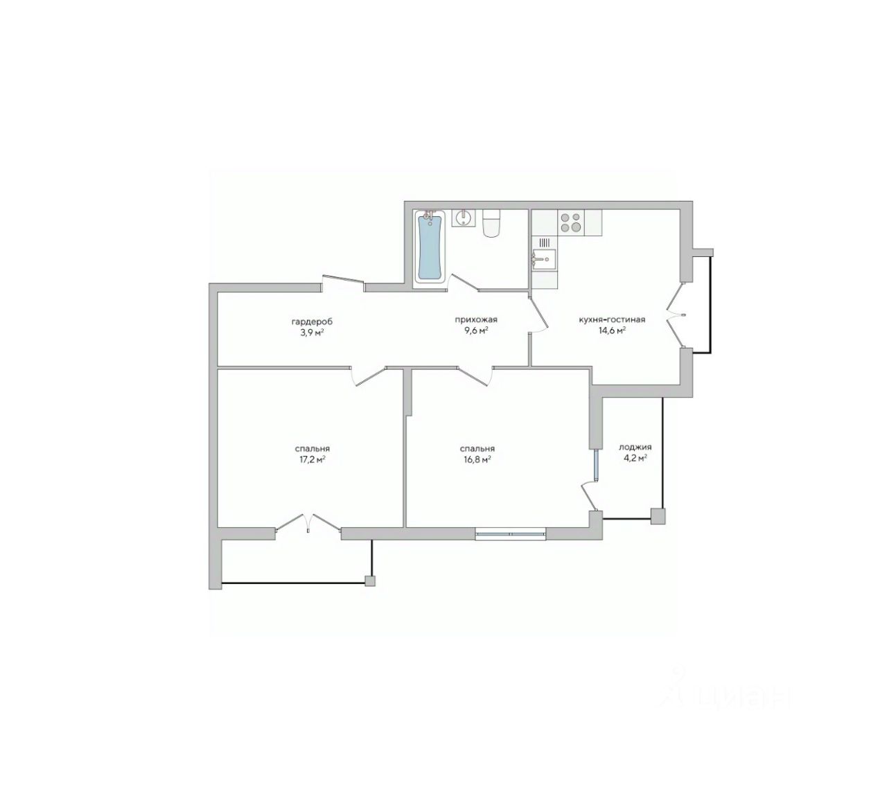 Площади апартаментов: от 48 м² до 71 м²