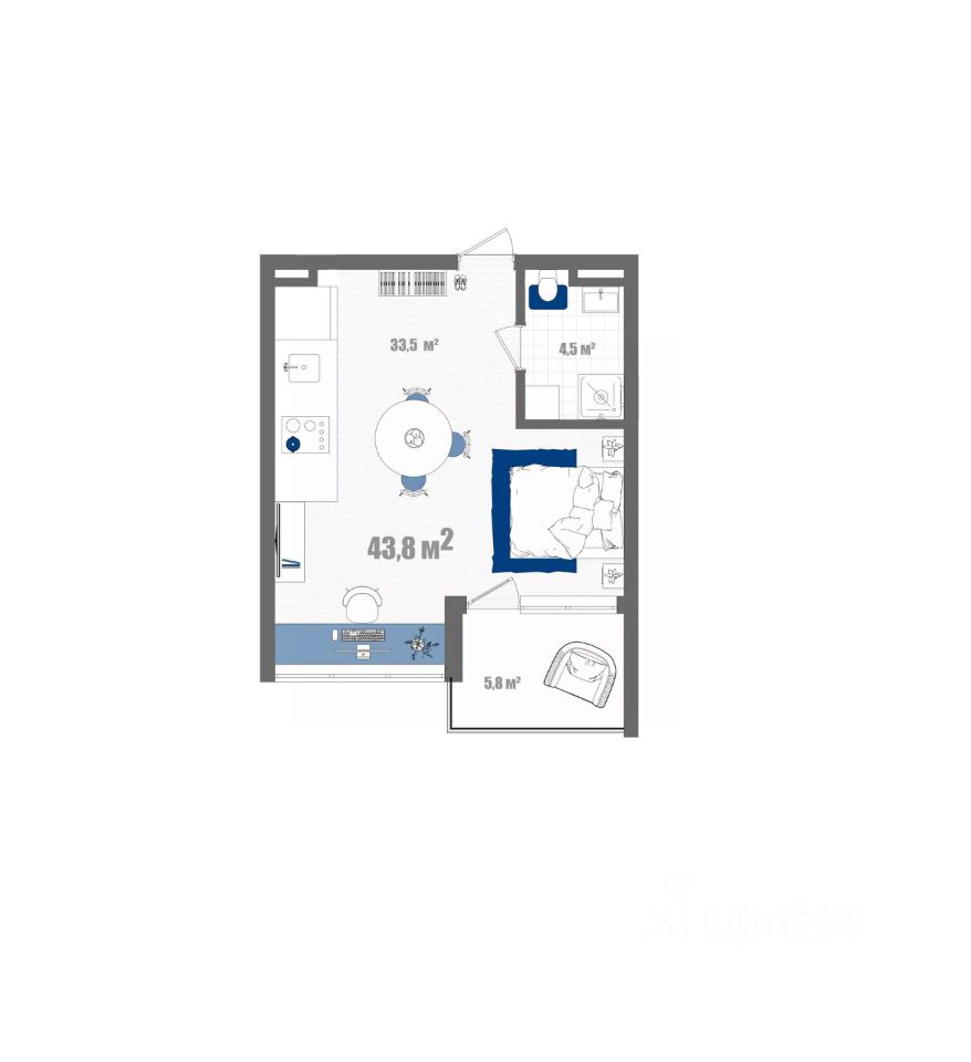 Общая площадь43,8 м2