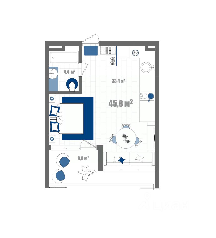 Общая площадь45,8 м2