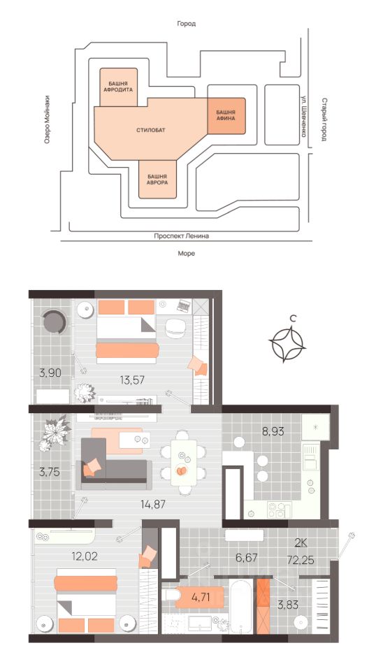 •доминанты города Евпатория 3 башни по 22 этажа, • 10 минут до побережья Черного моря, •779 квартир с более чем 20 уникальными планировками для комфортной жизни, •500 м2 спортивной инфраструктуры: от спортивных площадок до теннисного корта, •двухуровневый подземный паркинг с собственной автомойкой для жильцов, •общественное пространство между башнями для времени с детьми и отдыха, •3613 м2 торгово-развлекательного центра, • отстроенный с нуля Центр Культурного Развития для детей с концертным залом на 170 мест, •2028 год окончание строительства.