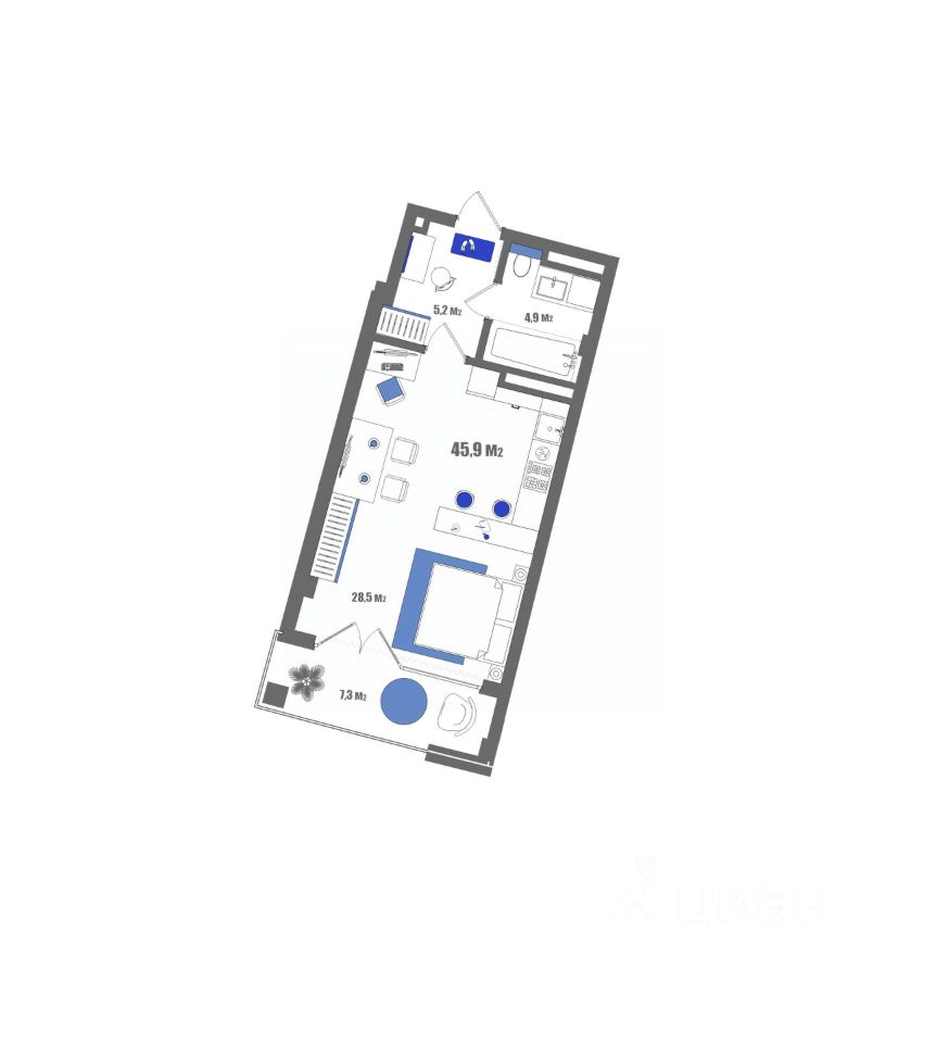 Общая площадь45,9 м2