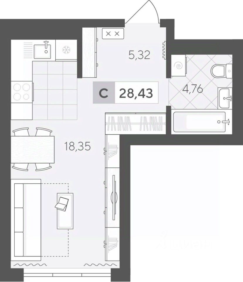 Продаётся студия в строящемся доме (ГП 2 (Сергея Корепанова, 34)), срок сдачи: IV-кв. 2027, общей площадью 28.43 кв.м., на 9 этаже. Новый жилой комплекс ''Скандиа. Квартал у Леса'' от Специализированного застройщика ''СКАНДИА У ЛЕСА'' расположен в г. Тюмень на ул. Бориса Прудаева.