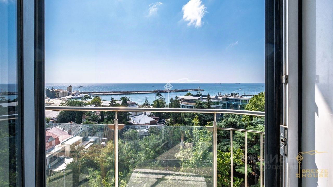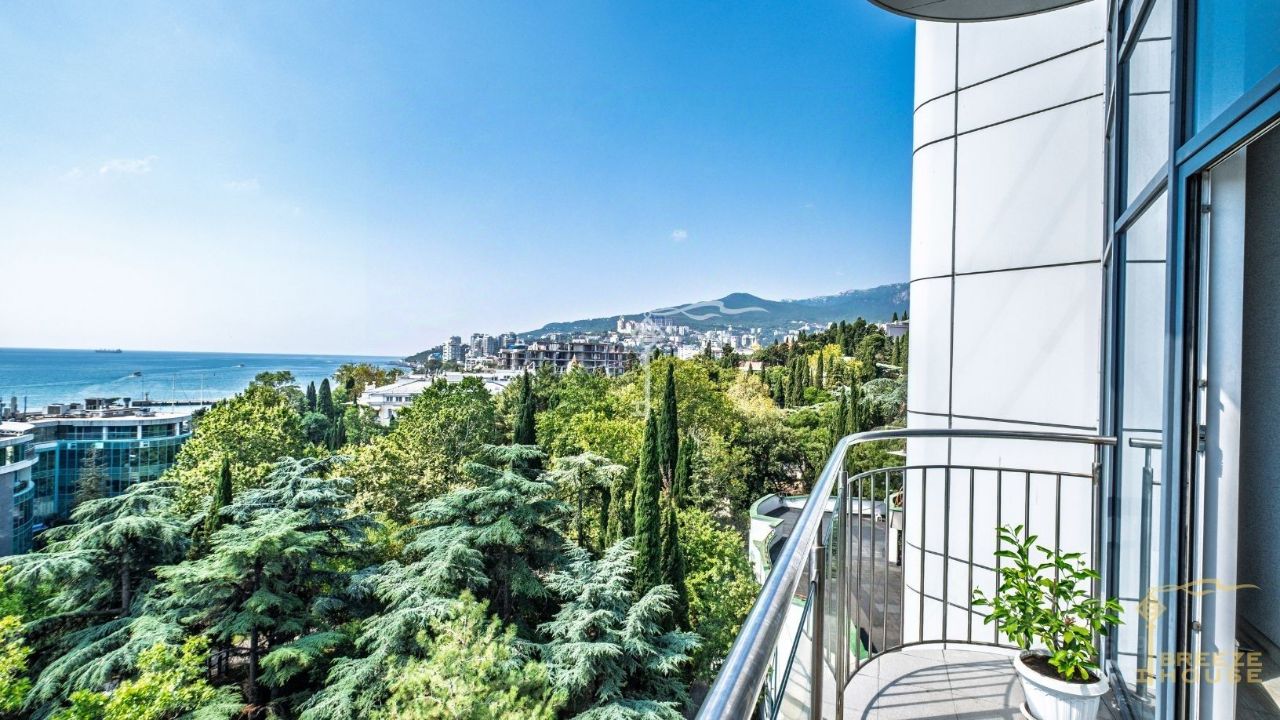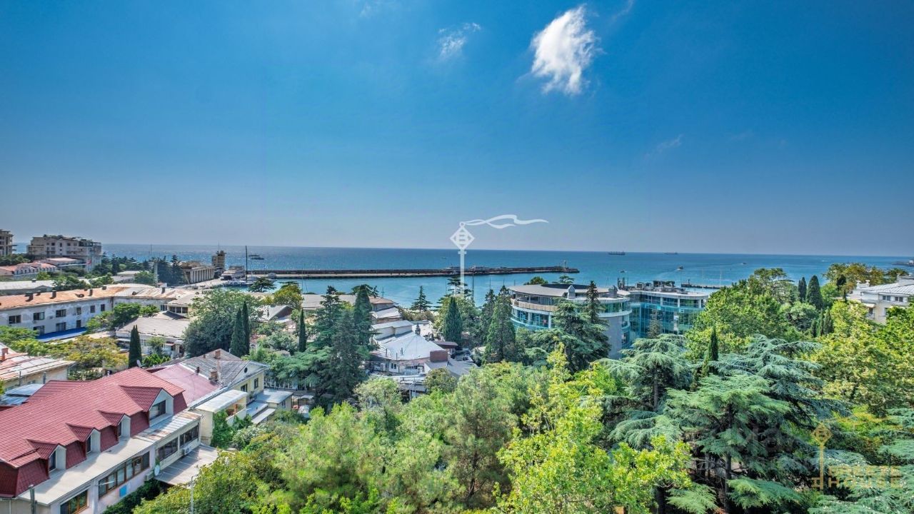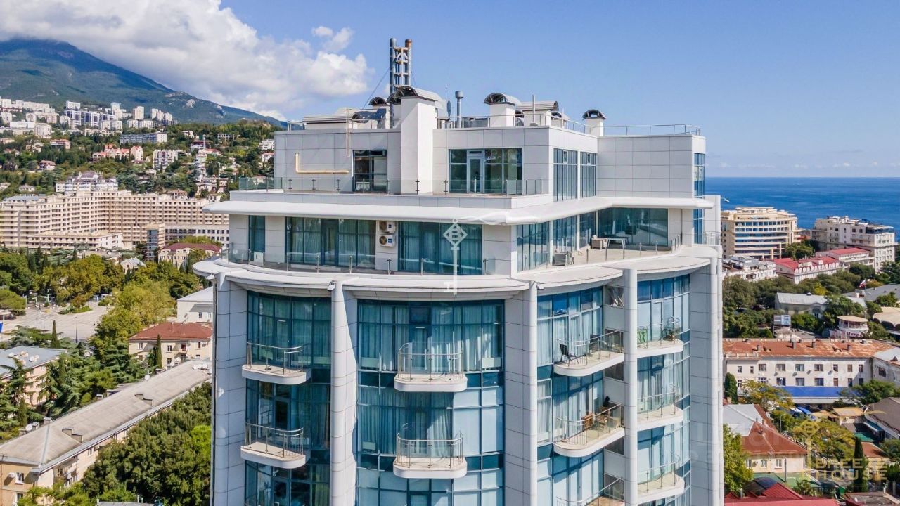 Квартира расположена на шестом этаже 14-этажного здания и имеет балкон с прямым видом на море и Ялтинскую бухту.