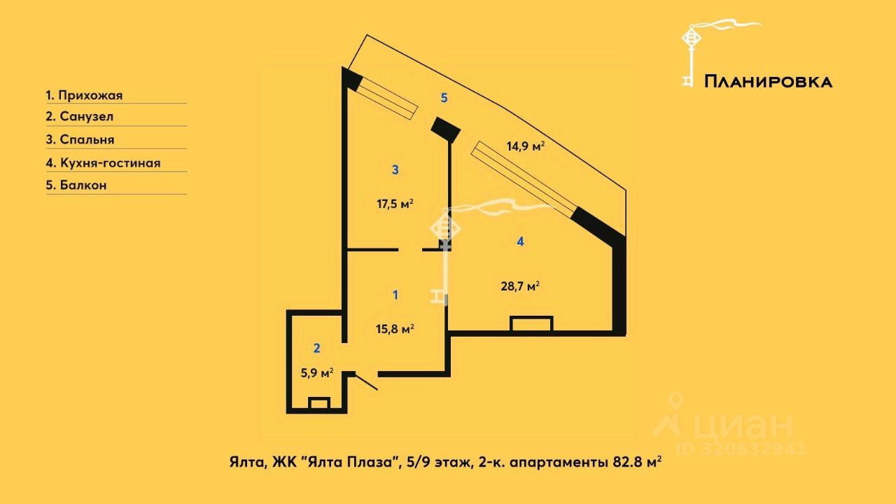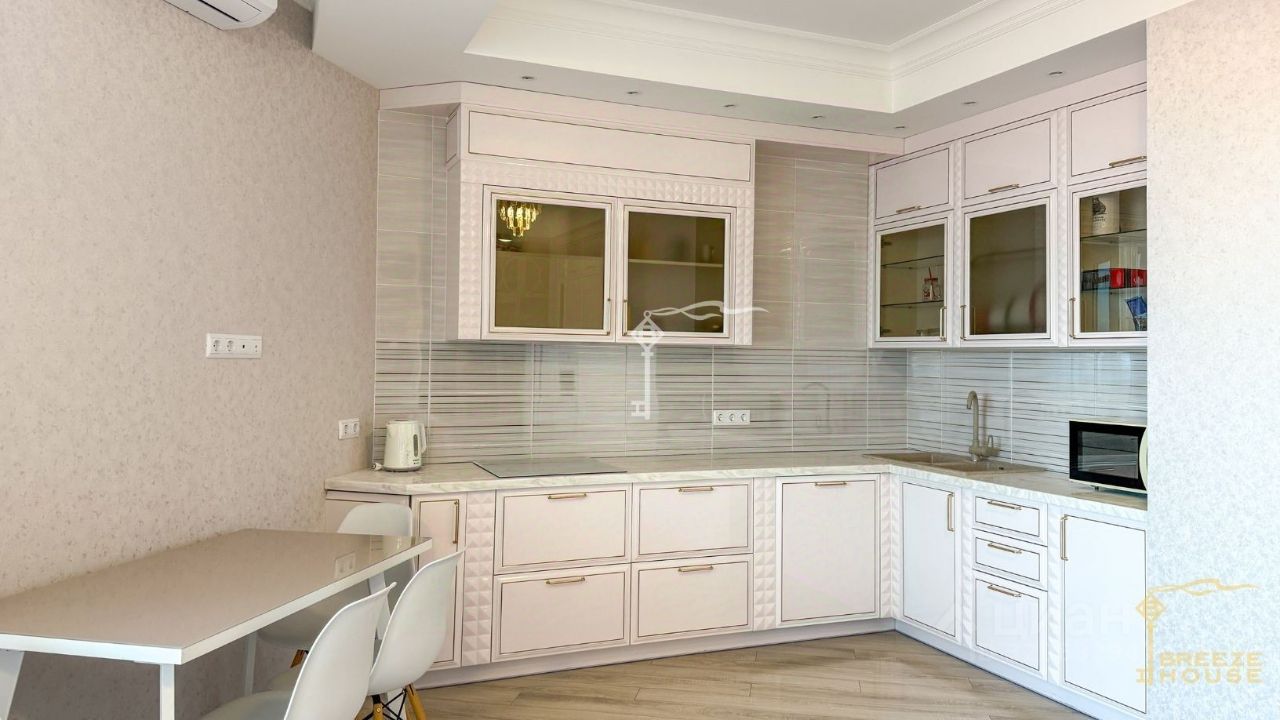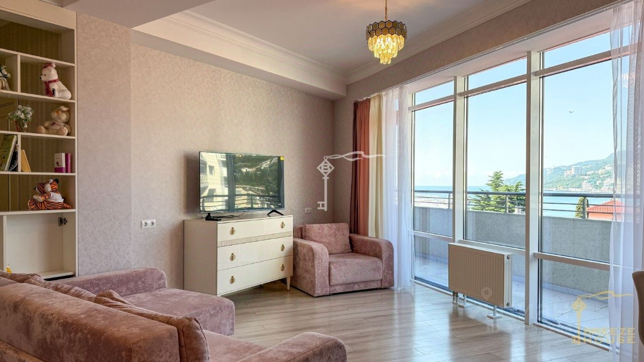 Продажа стильных двухкомнатных апартаментов площадью 82,8 м², расположенных на 5 этаже 9-этажного комплекса Yalta Plaza, в самом центре Ялты — всего в 200 метрах от моря и набережной.