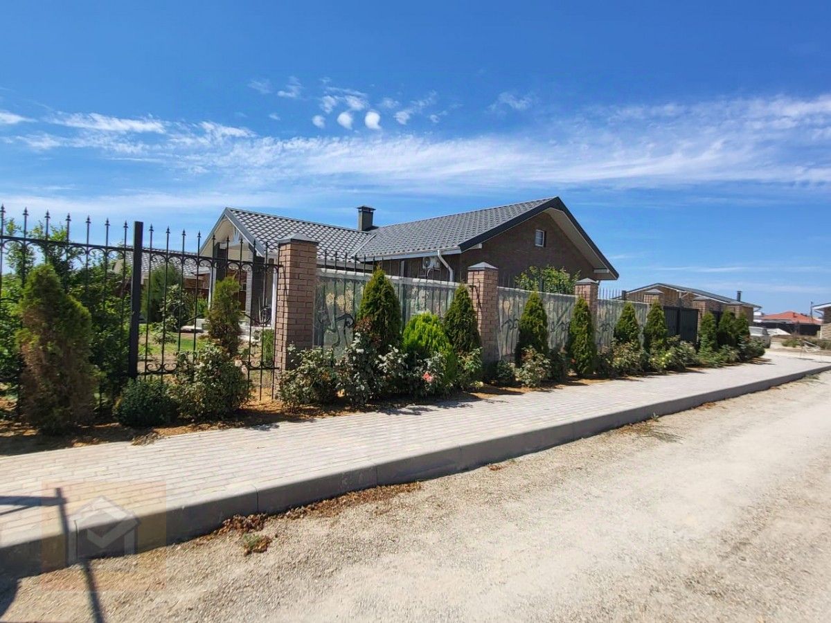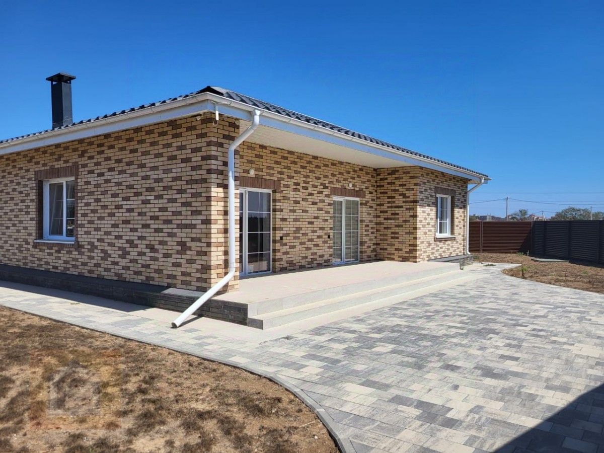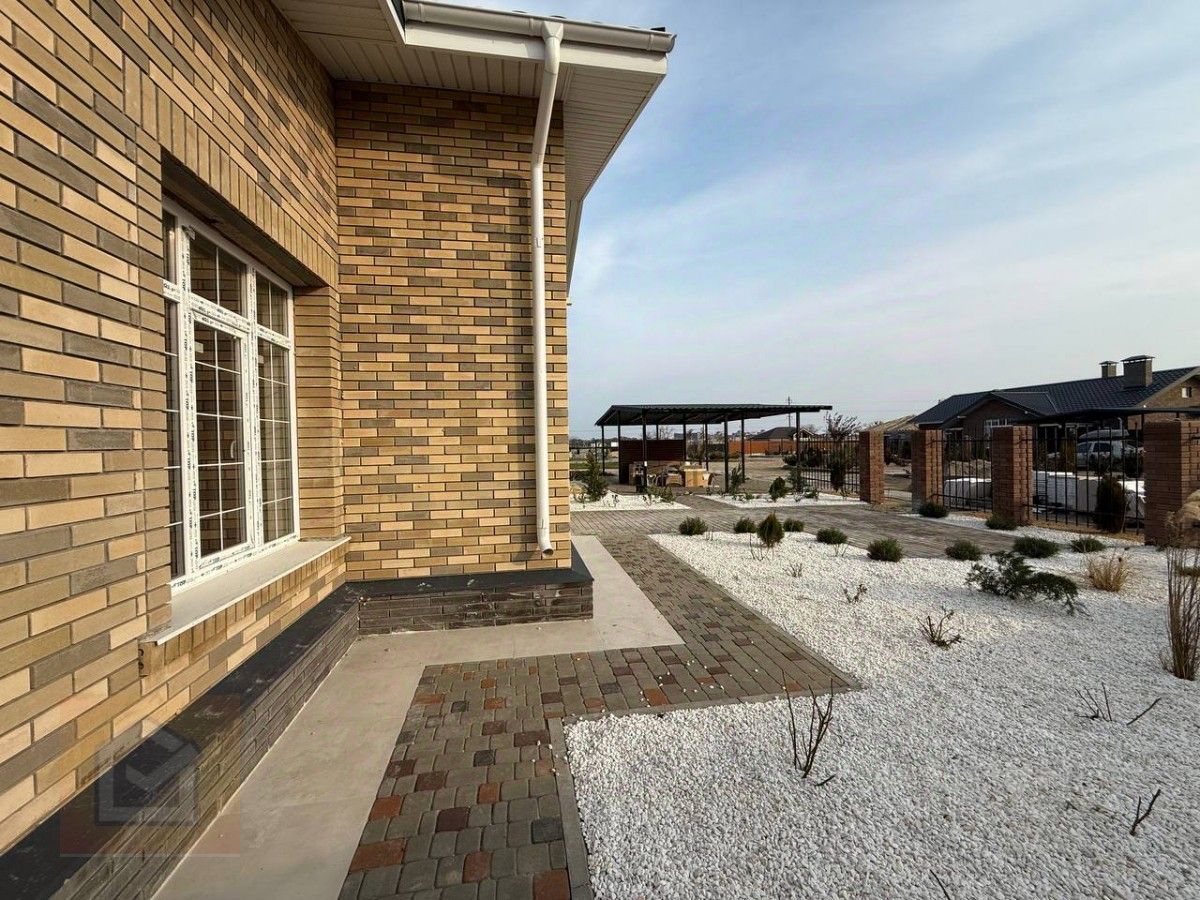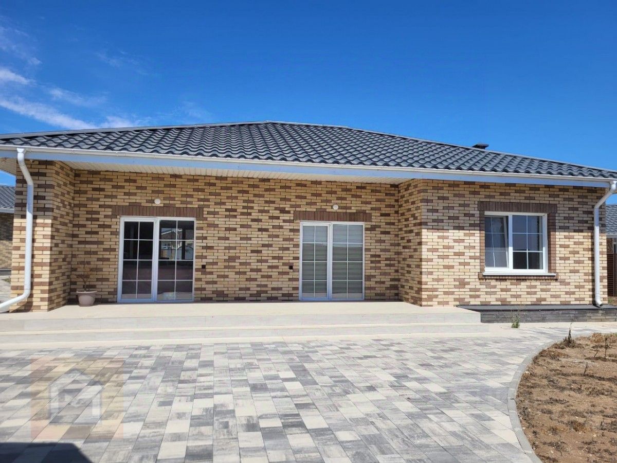 Год постройки 2025 г., Дом одноэтажный, облицованный декоративным кирпичом, Площадь дома 126 м.кв. Фундамент монолитная плита, Материал стен гиперпрессованный кирпич из природных материалов (дробленая ракушка, песок), Крыша двускатная, вентилируемая. Материал кровли металлочерепица. Перекрытия деревянные балки Водоснабжение центральное, Канализация центральная, Отопление электрическое, теплый пол. Электричество 15 кватт на каждый дом.