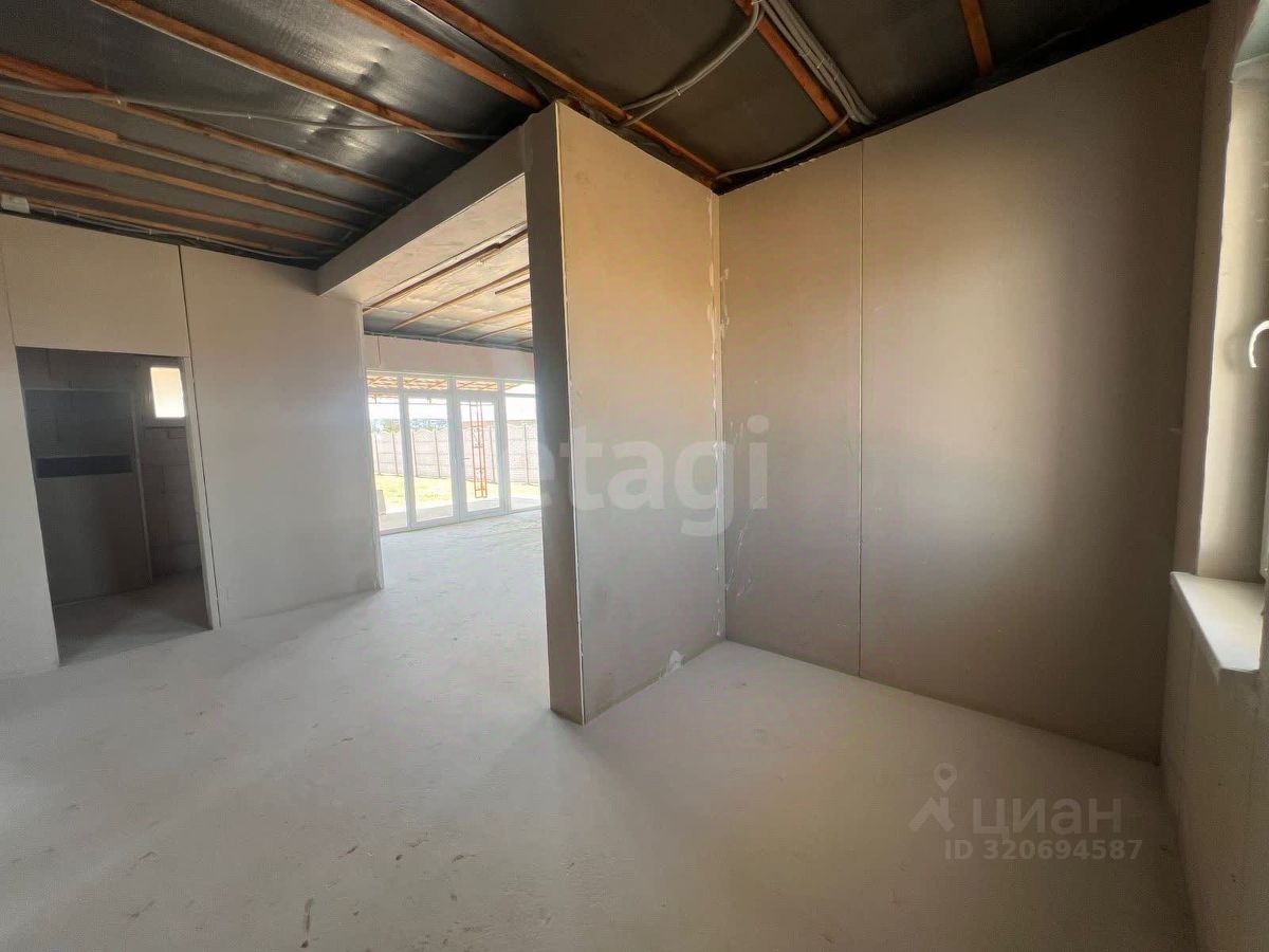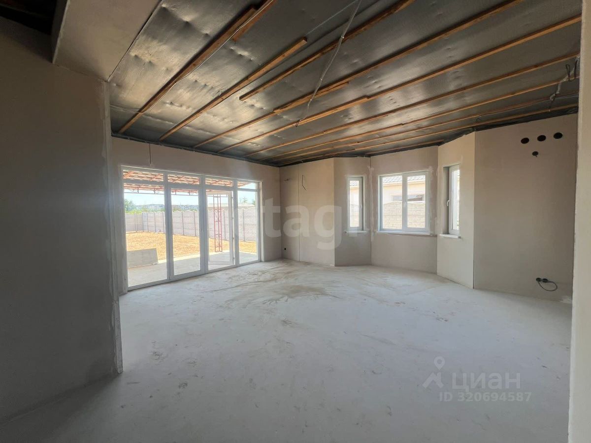 Дом одноэтажный, 2021 г. постройки, высота потолков 3,5 м, общей площадью 139.9 м2, 4 комнаты, кухня-гостиная-терраса, раздельные с/у и ванная комната. Разводка электричества и воды произведена, крыша утеплена, новые стеклопакеты панорамные. Коммуникации: электричество 15 кВт, вода центральная, газ проходит по улице, канализация септик.