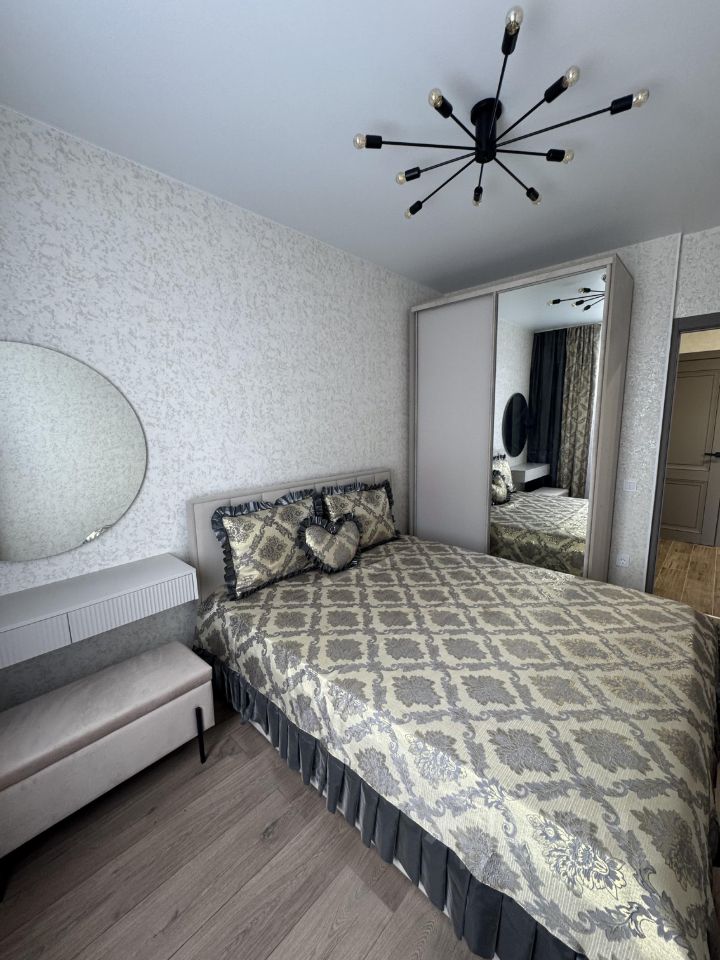 Квартира выполнена в дизайнерском стиле и полностью готова для комфортного проживания. В наличии вся необходимая мебель: как в комнатах, так и на кухне. Встроенная техника включает кондиционер, холодильник, посудомоечную машину, телевизор и стиральную машину. В ванной комнате установлена современная душевая кабина. Также имеется балкон.