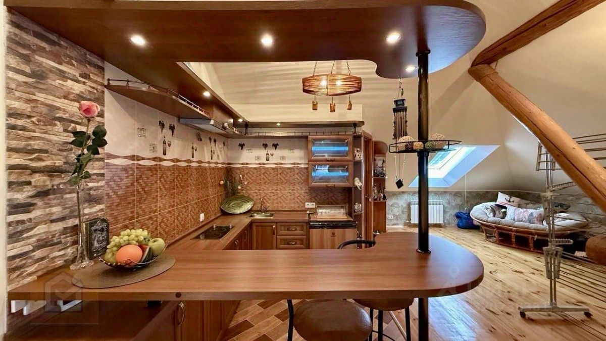 В квартире произведен капитальный, дорогостоящий, качественный ремонт, после которого в квартире никто не проживал. Полы на мансарде застелены дубовым паркетом, в комнатах на 1-м этаже - паркетной доской из дуба. Межкомнатные двери - дубовый шпон. Лестница изготовлена из натурального бука, на металлическом каркасе. Отопление автономное (установлен новый двухконтурный газовый котел с программатором). Зимой очень тепло и сухо, летом - не жарко ( толщина стен обеспечивает прохладу, отсутствует необходимость использования кондиционеров).