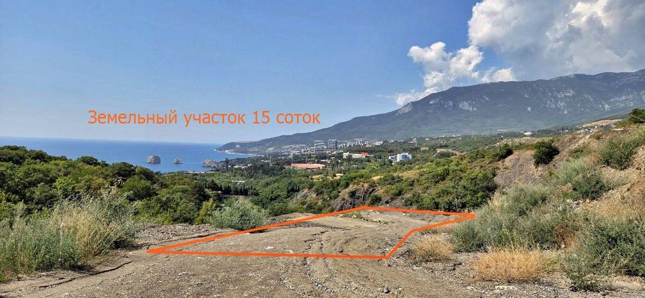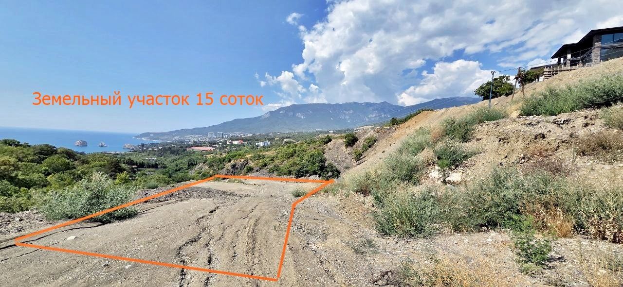 Продается земельный участок площадью 15 соток с шикарным видом на море, Аю-Даг и Ялтинскую яйлу.