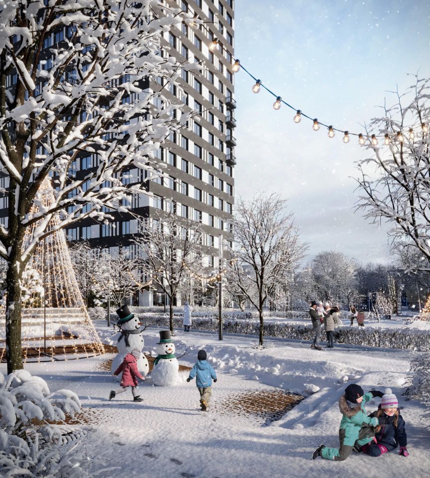 Благоустроенные дворы. Наполнение двора детально продумано, с учетом потребностей каждого жителя. Детские площадки для разных возрастов, зоны отдыха, зеленые аллеи и пешеходные дорожки. В центре двора предусмотрен амфитеатр для общих встреч жителей и больших мероприятий. Собственная сервисная компания 24/7 поддерживает чистоту территории жилого квартала.