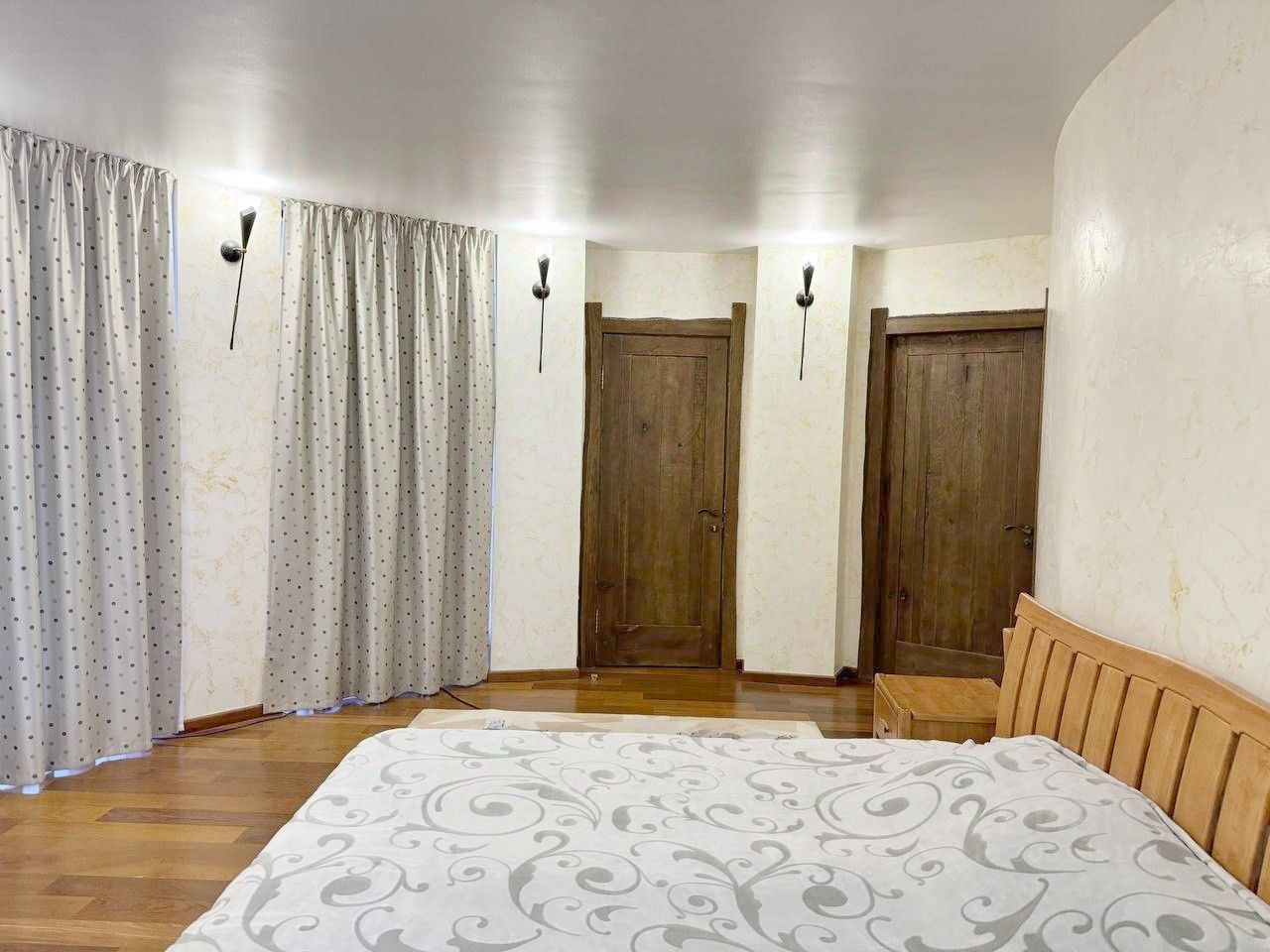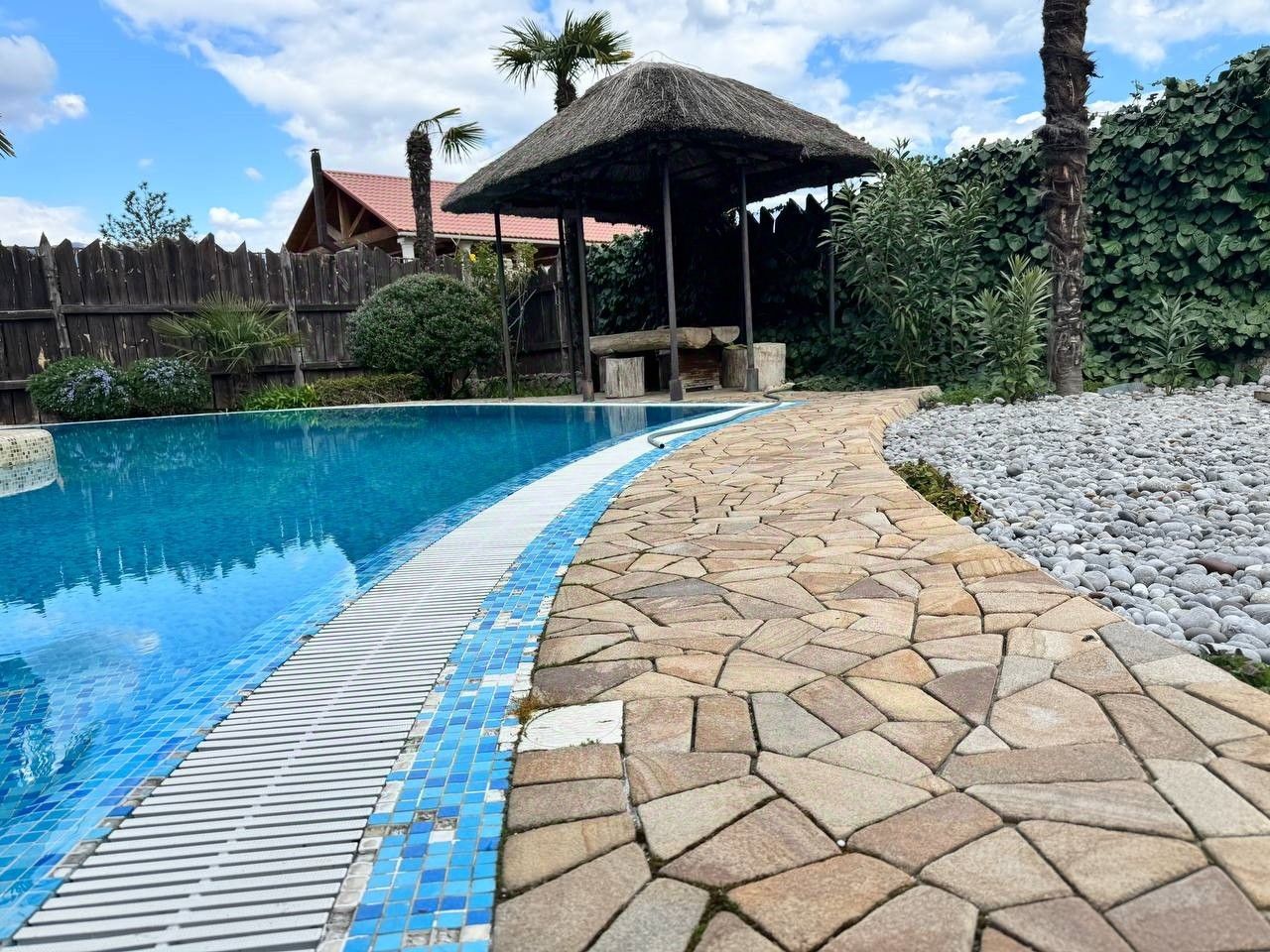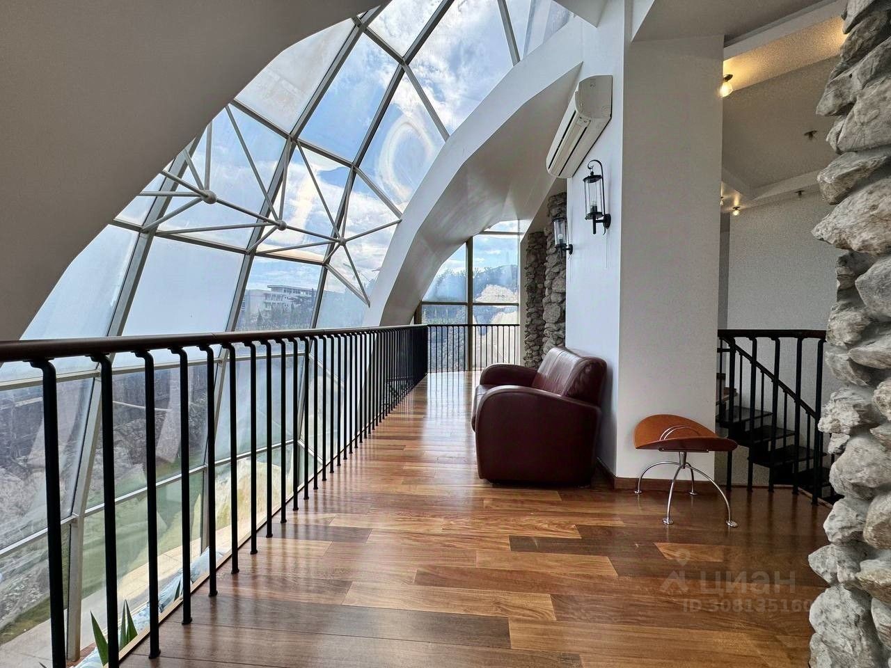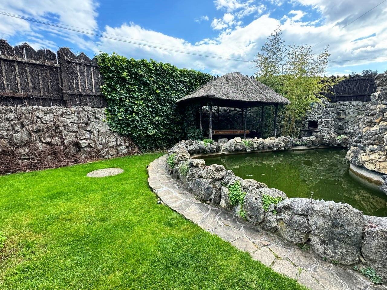 Вашему вниманию предлагается воплощенная в жизнь идея панорамного дома в г. Ялта, пгт. Ливадия Уникальный дом с панорамными окнам и возможностью обозревать звездное небо, видом на виноградники и море. Общая площадь дома 474,4 м2, расположен на земельном участке площадью 1214 м2, отдельно стоящее двухэтажное здание гаража на два автомобиля, сауна с комнатой отдыха, санузлом, общей площадью 144,6 м2. На территории расположен бассейн с морской водой, две беседки, пруд с карпами Кои, выполнен ландшафтный дизайн. Первый этаж дома состоит из прихожей, большого зала-гостиной с панорамным остеклением, санузел, кухня-толовая, спальня, кинозал. На втором этаже уютно расположились мастер спальня с гардеробной и санузлом, две раздельных спальни с общим санузлом, выход на балкон. На мансардном этаже расположен кабинет. Домовладение также включает себя автономные гостевые комнаты с отдельным входом, состоящие из кухни, санузла, спален. Дом выполнен из материалов, наиболее подходящих к данному климату стены ракушечник, крыша - медь, полы тропическое дерево Айпе. На фасаде здания окна защищены стеклопакетами с мембраной ''теневое зеркало''.