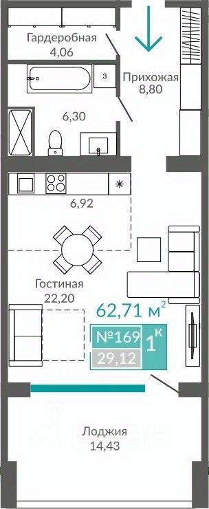Продаётся студия-апартаменты в сданном доме (Дом 2), срок сдачи: II-кв. 2024, общей площадью 62.71 кв.м., на 2 этаже. Расположение, транспортная доступностьЖК ''Золотые пески'' расположен в новом районе города Евпатории. Симферопольская улица, переходящая в одноименное шоссе, которое далее становится Евпаторийским шоссе, в направлении города Саки — это полоса между озером Сасык (с одной стороны) и Черным морем (со стороны новостройки). Евпатория известна своими пляжами, наилучшие из которых — песчаные, здесь находится природная широкая полоса песка на протяжении всей трассы.От исторического центра, набережной Евпатории (ориентир — мечеть Джума-Джами), до ЖК ''Золотые пески'' меньше 5 км. Жилой комплекс очень удобно расположен вблизи автобусных остановок и железнодорожной станции ''54-й км''. Электричка идет до ж/д вокзала Евпатории около двенадцати минут.ИнфраструктураАпартаменты ''Золотые пески'' спроектированы как мини-город: жильцы, владельцы или гости апартаментов должны быть полностью обеспечены всем для проживания и отдыха. СПА-центры, кафе и бары, спортивные залы и детские игровые комнаты будут к услугам проживающих в жилом комплексе. Теннисные корты, кинотеатр и открытые детские площадки также предусмотрены проектом.Евпатория с ее развитой инфраструктурой находится недалеко, всего в пяти километрах. В городе расположены медицинские и общеобразовательные учреждения, салоны красоты и рестораны, спортивные комплексы. Несколько километров на машине или автобусе по Симферопольскому шоссе в другую от Евпатории сторону, к городу Саки, — и к услугам жильцов аквапарк ''Банановая республика'', один из самых известных в этом районе Крыма. Грязелечебницы и озеро Мойнаки находятся в ближайшем к ЖК районе Евпатории, в частных и государственных клиниках предлагаются циклы оздоравливающих ванн и процедур. Озеро и лиман напротив — место, где живет множество птиц, в том числе и лебеди.Надежность застройщикаКрымский застройщик ''Монолит'' известен на полуострове как строительная компания, активно растущая в профессиональной сфере. В данный момент в портфеле застройщика четыре готовых дома, строится 25 домов. Застройщик на сайте проекта выкладывает актуальные фото и видео, информирует о ходе строительных работ. Сроки не выходят за пределы, указанные в документации.АрхитектураЖК ''Золотые пески'' возводится в несколько очередей, сдается в эксплуатацию посекционно. По конструкции это жилая новостройка с помещениями под коммерческий найм. Технология постройки — монолитно-каркасная, основа корпусов — железобетон. В каждой из трех секций девять этажей. Фасадная часть отделана ракушечником и штукатуркой. На крыше металлочерепица, есть террасы. Апартаменты пригодны для круглогодичного проживания благодаря собственной котельной, предусмотренной на территории жилого комплекса.В корпусе имеются 1,2,3 и 4-х комнатные апартаменты площадью от 43 до 207 квадратных метров. Планировки просторные, много остекления и света в комнатах, есть лоджии, кухни не менее чем 6 кв. м. Сдавались апар