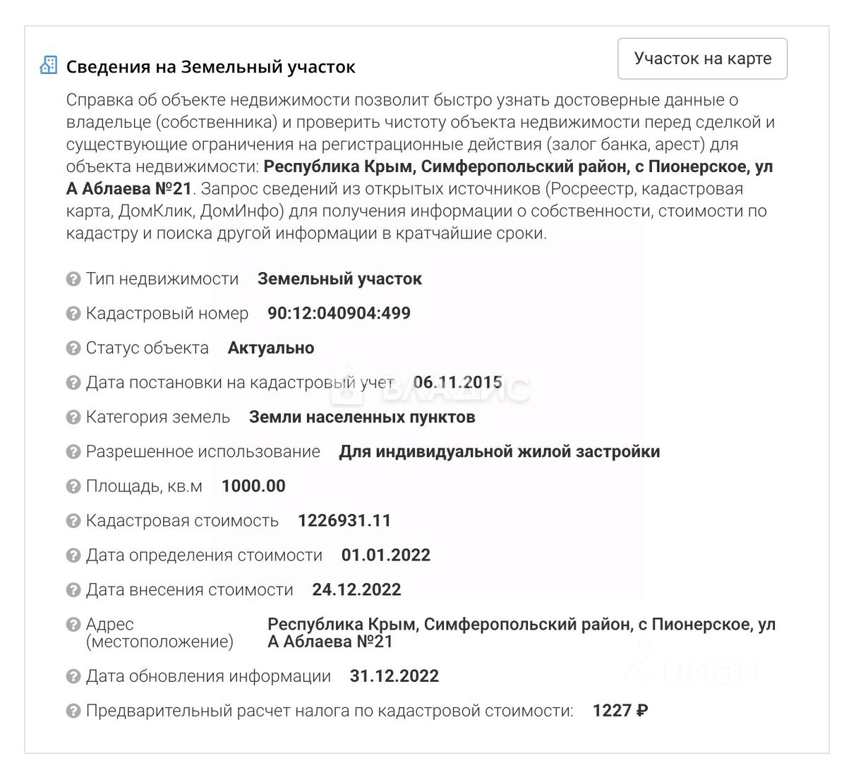 Кадастровый номер: 90:12:040904:499