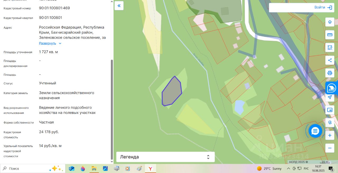 Продается земельный участок ЛПХ в с. Многоречье Бахчисарайского р-на