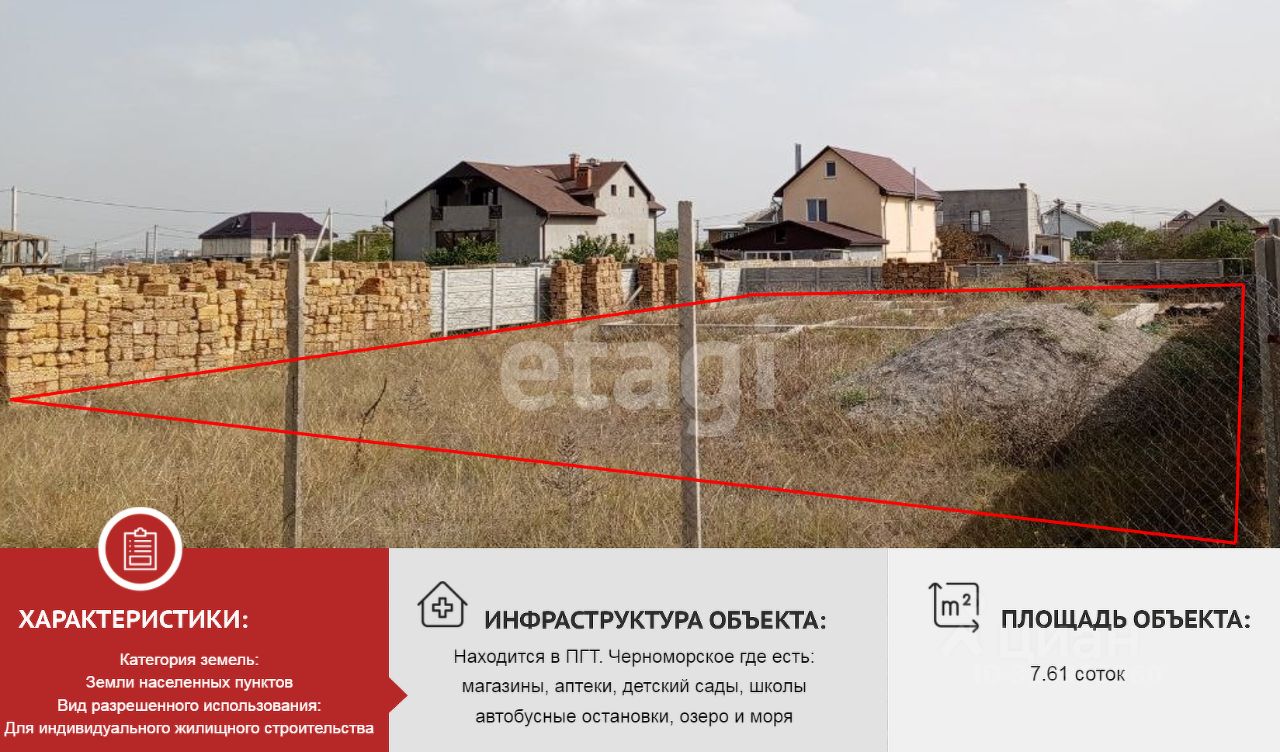 Продается участок площадью 7.61 соток, в ПГТ. Черноморское.