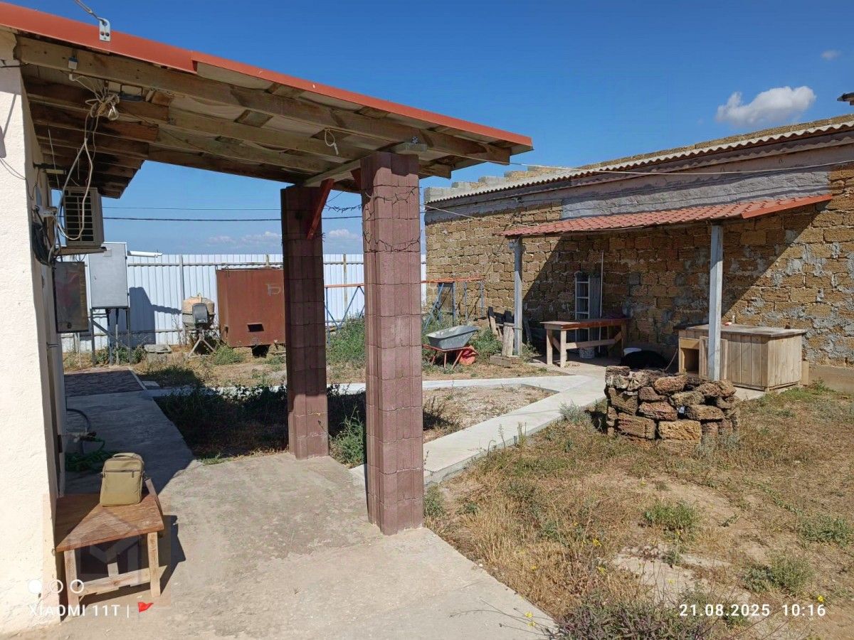 В продаже просторный дом в дали от городской суеты, но в тоже время недалеко от города всего в 9 км от Евпатории, подъезд по отличному асфальту. Так же по периметру участка установлены камеры видеонаблюдения(со встроенным микрофоном) - в любую минуту с любой точки мира возможно посмотреть, чито происходит на Вашем участке. Основные характеристики: - До моря — 2 км. - Поблизости — солёное озеро с лечебными грязями. - В посёлке есть школа, детский сад, супермаркет, аптеки и банкоматы. - Все коммуникации: электричество, газ, водоснабжение (своя скважина), канализация (септик 10 м + вывод под баню). - Никто не прописан — готов к оперативной сделке.