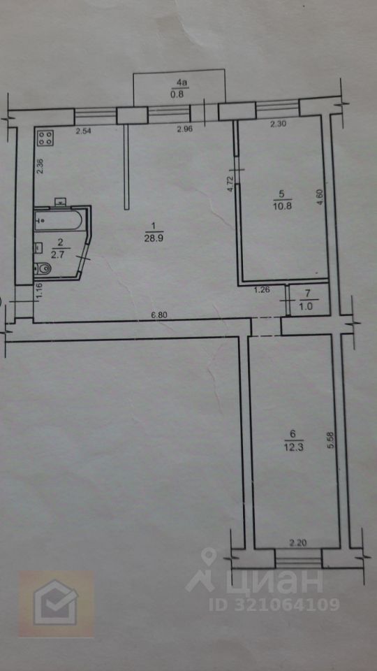 Квартира состоит из просторной кухни-гостиной и двух комнат. Из гостиной выход на застекленный балкон.