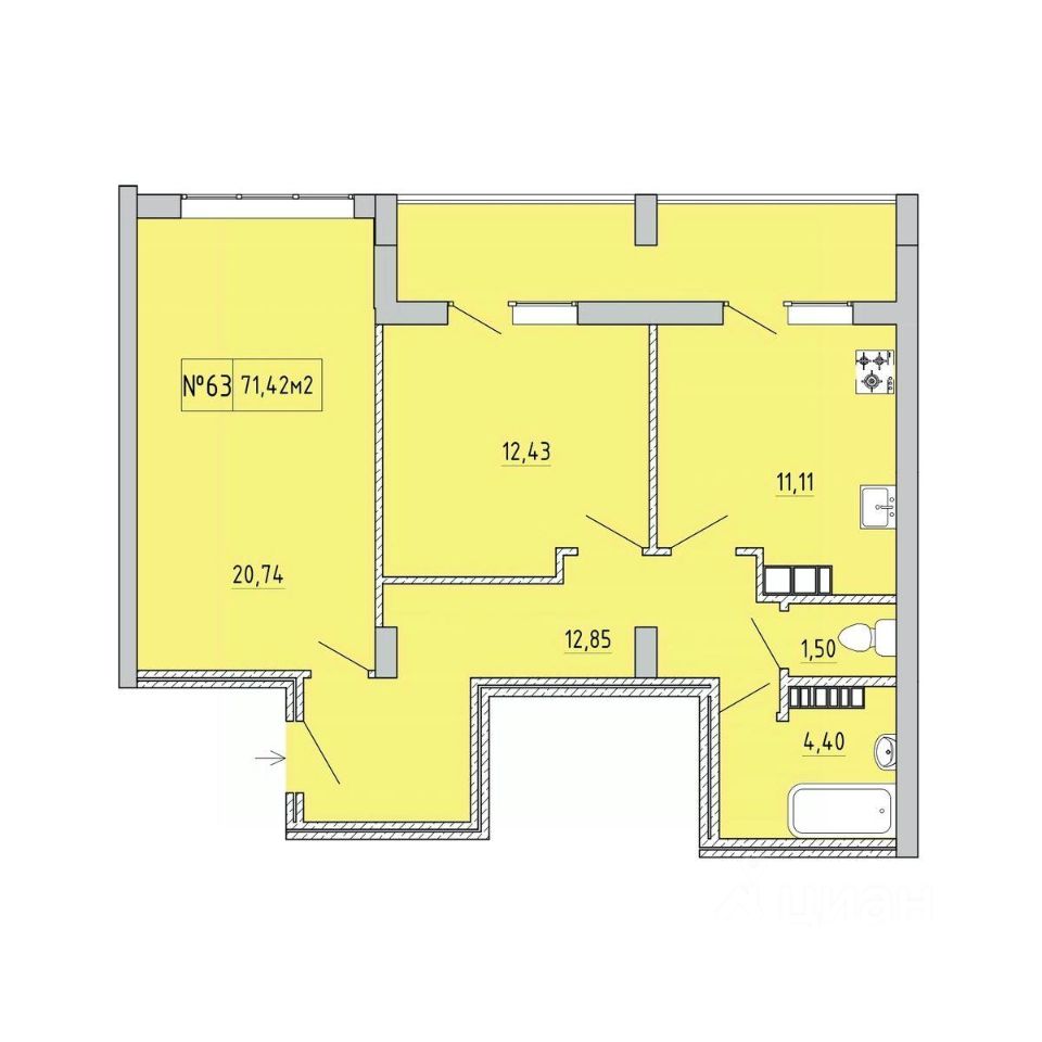 Общая площадь67,17 м2