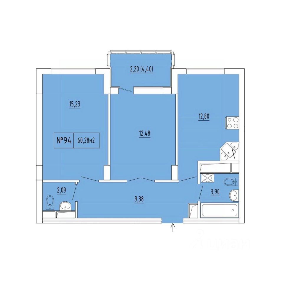 Общая площадь58,08 м2