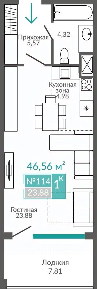 Общая площадь46,56 м2