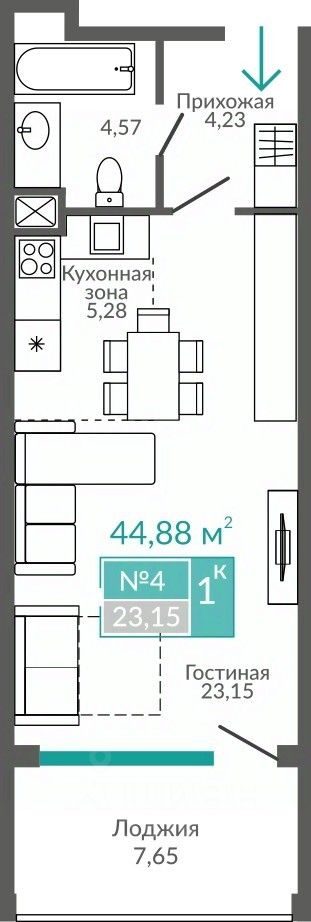 Общая площадь44,88 м2