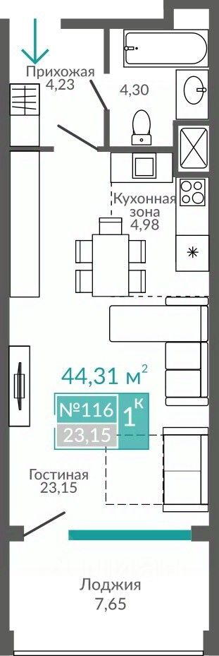 Продаётся студия-апартаменты в строящемся доме (Блок 7), срок сдачи: II-кв. 2027, общей площадью 44.31 кв.м., на 8 этаже. Расположение, транспортная доступностьЖК ''Золотые пески'' расположен в новом районе города Евпатории. Симферопольская улица, переходящая в одноименное шоссе, которое далее становится Евпаторийским шоссе, в направлении города Саки — это полоса между озером Сасык (с одной стороны) и Черным морем (со стороны новостройки). Евпатория известна своими пляжами, наилучшие из которых — песчаные, здесь находится природная широкая полоса песка на протяжении всей трассы.От исторического центра, набережной Евпатории (ориентир — мечеть Джума-Джами), до ЖК ''Золотые пески'' меньше 5 км. Жилой комплекс очень удобно расположен вблизи автобусных остановок и железнодорожной станции ''54-й км''. Электричка идет до ж/д вокзала Евпатории около двенадцати минут.ИнфраструктураАпартаменты ''Золотые пески'' спроектированы как мини-город: жильцы, владельцы или гости апартаментов должны быть полностью обеспечены всем для проживания и отдыха. СПА-центры, кафе и бары, спортивные залы и детские игровые комнаты будут к услугам проживающих в жилом комплексе. Теннисные корты, кинотеатр и открытые детские площадки также предусмотрены проектом.Евпатория с ее развитой инфраструктурой находится недалеко, всего в пяти километрах. В городе расположены медицинские и общеобразовательные учреждения, салоны красоты и рестораны, спортивные комплексы. Несколько километров на машине или автобусе по Симферопольскому шоссе в другую от Евпатории сторону, к городу Саки, — и к услугам жильцов аквапарк ''Банановая республика'', один из самых известных в этом районе Крыма. Грязелечебницы и озеро Мойнаки находятся в ближайшем к ЖК районе Евпатории, в частных и государственных клиниках предлагаются циклы оздоравливающих ванн и процедур. Озеро и лиман напротив — место, где живет множество птиц, в том числе и лебеди.Надежность застройщикаКрымский застройщик ''Монолит'' известен на полуострове как строительная компания, активно растущая в профессиональной сфере. В данный момент в портфеле застройщика четыре готовых дома, строится 25 домов. Застройщик на сайте проекта выкладывает актуальные фото и видео, информирует о ходе строительных работ. Сроки не выходят за пределы, указанные в документации.АрхитектураЖК ''Золотые пески'' возводится в несколько очередей, сдается в эксплуатацию посекционно. По конструкции это жилая новостройка с помещениями под коммерческий найм. Технология постройки — монолитно-каркасная, основа корпусов — железобетон. В каждой из трех секций девять этажей. Фасадная часть отделана ракушечником и штукатуркой. На крыше металлочерепица, есть террасы. Апартаменты пригодны для круглогодичного проживания благодаря собственной котельной, предусмотренной на территории жилого комплекса.В корпусе имеются 1,2,3 и 4-х комнатные апартаменты площадью от 43 до 207 квадратных метров. Планировки просторные, много остекления и света в комнатах, есть лоджии, кухни не менее чем 6 кв. м. Сдавались