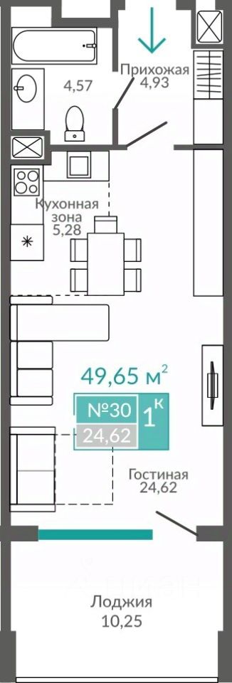 Общая площадь49,65 м2