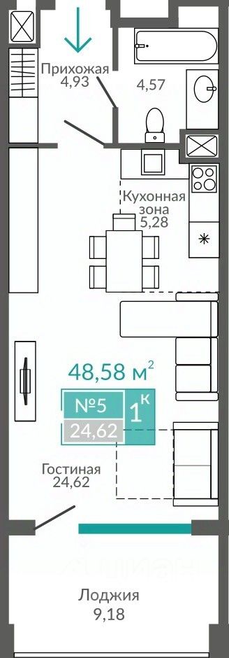 Продаётся студия-апартаменты в строящемся доме (Блок 7), срок сдачи: II-кв. 2027, общей площадью 48.58 кв.м., на 2 этаже. Расположение, транспортная доступностьЖК ''Золотые пески'' расположен в новом районе города Евпатории. Симферопольская улица, переходящая в одноименное шоссе, которое далее становится Евпаторийским шоссе, в направлении города Саки — это полоса между озером Сасык (с одной стороны) и Черным морем (со стороны новостройки). Евпатория известна своими пляжами, наилучшие из которых — песчаные, здесь находится природная широкая полоса песка на протяжении всей трассы.От исторического центра, набережной Евпатории (ориентир — мечеть Джума-Джами), до ЖК ''Золотые пески'' меньше 5 км. Жилой комплекс очень удобно расположен вблизи автобусных остановок и железнодорожной станции ''54-й км''. Электричка идет до ж/д вокзала Евпатории около двенадцати минут.ИнфраструктураАпартаменты ''Золотые пески'' спроектированы как мини-город: жильцы, владельцы или гости апартаментов должны быть полностью обеспечены всем для проживания и отдыха. СПА-центры, кафе и бары, спортивные залы и детские игровые комнаты будут к услугам проживающих в жилом комплексе. Теннисные корты, кинотеатр и открытые детские площадки также предусмотрены проектом.Евпатория с ее развитой инфраструктурой находится недалеко, всего в пяти километрах. В городе расположены медицинские и общеобразовательные учреждения, салоны красоты и рестораны, спортивные комплексы. Несколько километров на машине или автобусе по Симферопольскому шоссе в другую от Евпатории сторону, к городу Саки, — и к услугам жильцов аквапарк ''Банановая республика'', один из самых известных в этом районе Крыма. Грязелечебницы и озеро Мойнаки находятся в ближайшем к ЖК районе Евпатории, в частных и государственных клиниках предлагаются циклы оздоравливающих ванн и процедур. Озеро и лиман напротив — место, где живет множество птиц, в том числе и лебеди.Надежность застройщикаКрымский застройщик ''Монолит'' известен на полуострове как строительная компания, активно растущая в профессиональной сфере. В данный момент в портфеле застройщика четыре готовых дома, строится 25 домов. Застройщик на сайте проекта выкладывает актуальные фото и видео, информирует о ходе строительных работ. Сроки не выходят за пределы, указанные в документации.АрхитектураЖК ''Золотые пески'' возводится в несколько очередей, сдается в эксплуатацию посекционно. По конструкции это жилая новостройка с помещениями под коммерческий найм. Технология постройки — монолитно-каркасная, основа корпусов — железобетон. В каждой из трех секций девять этажей. Фасадная часть отделана ракушечником и штукатуркой. На крыше металлочерепица, есть террасы. Апартаменты пригодны для круглогодичного проживания благодаря собственной котельной, предусмотренной на территории жилого комплекса.В корпусе имеются 1,2,3 и 4-х комнатные апартаменты площадью от 43 до 207 квадратных метров. Планировки просторные, много остекления и света в комнатах, есть лоджии, кухни не менее чем 6 кв. м. Сдавались