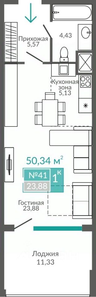 Общая площадь50,34 м2