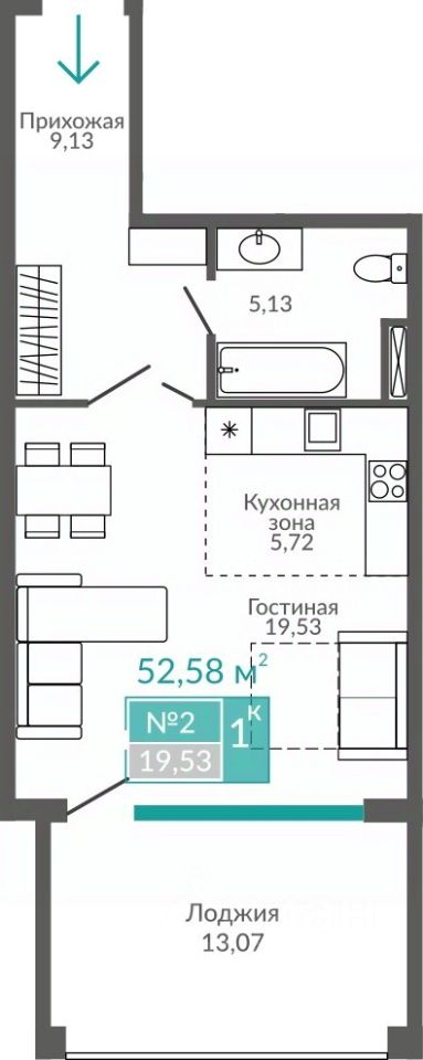 Общая площадь52,58 м2