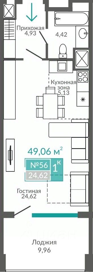 Общая площадь49,06 м2