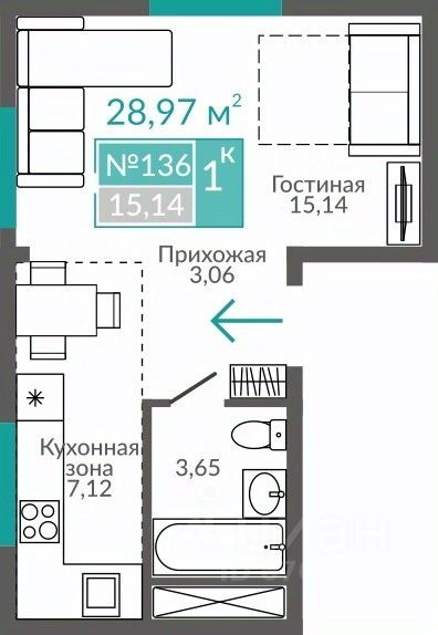 Общая площадь28,97 м2