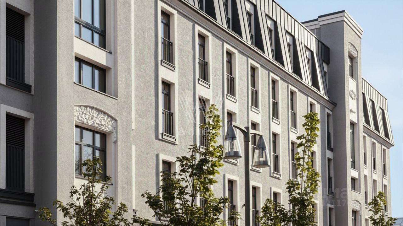 Главное об апартаментах: третий этаж, 96 метров, кухня-столовая, гостиная, спальня с санузлом, гостевой санузел. Кухонный гарнитур Valcucine, сантехника Villeroy&Boch, техника Miele.
