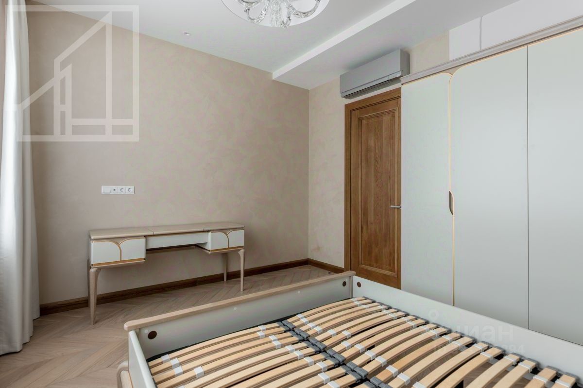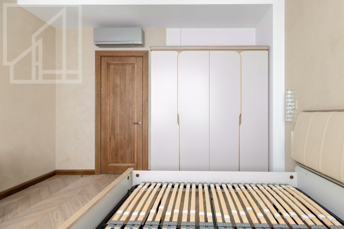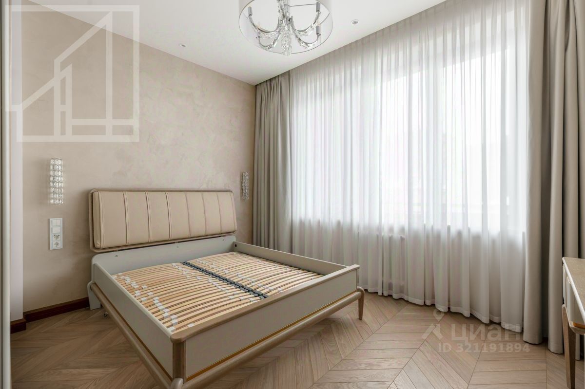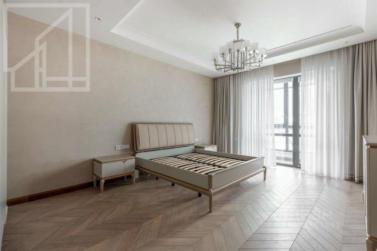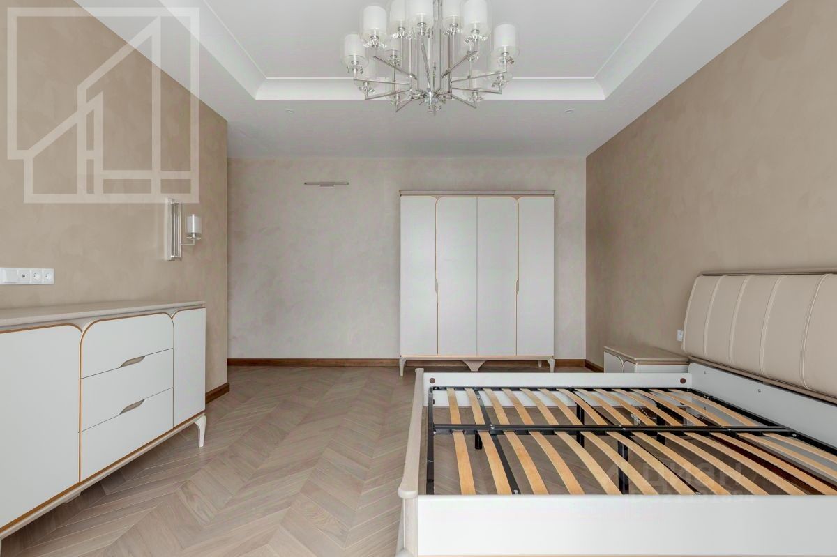 Планировка включает гостиную, кухню-столовую, мастер-спальню с выходом на балкон и собственным санузлом с душем, вторую спальню, ванную комнату, гардеробную с постирочной зоной, холл. Две спальни полностью укомплектованы мебелью, на кухне установлен гарнитур со встроенной техникой. Интерьер выполнен в светлых лаконичных тонах. Из окон открываются панорамные виды на улицу. Мебель докупают под клиента.