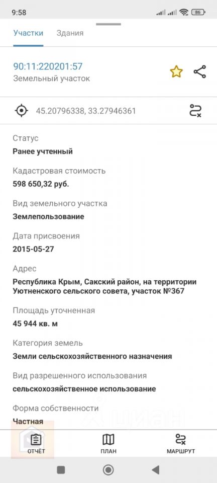 Продается участок сельхозназначения в Уютном, 9.2 ГА Расположен на расстоянии 1 км от села Расстояние до моря 6 км Документы РФ, быстрый выход на сделку Торг!