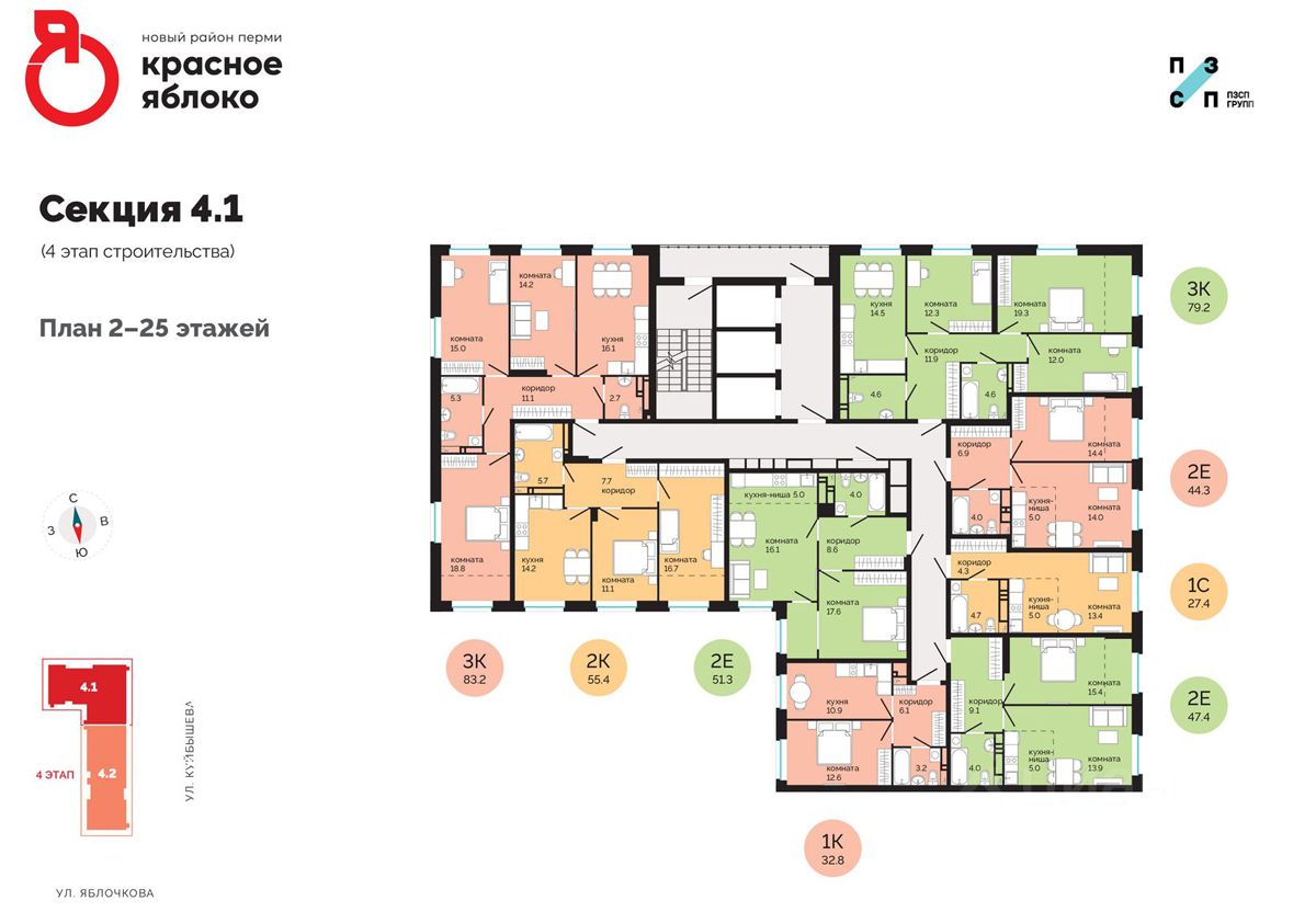ЖК ''Красное яблоко'' — новый концептуальный район от застройщика ПЗСП в Свердловском районе Перми. Название объединяет известные пермякам микрорайон Краснова и улицу Яблочкова. Расположение и транспорт: - Адрес: ул.