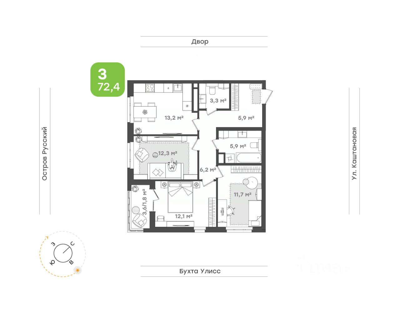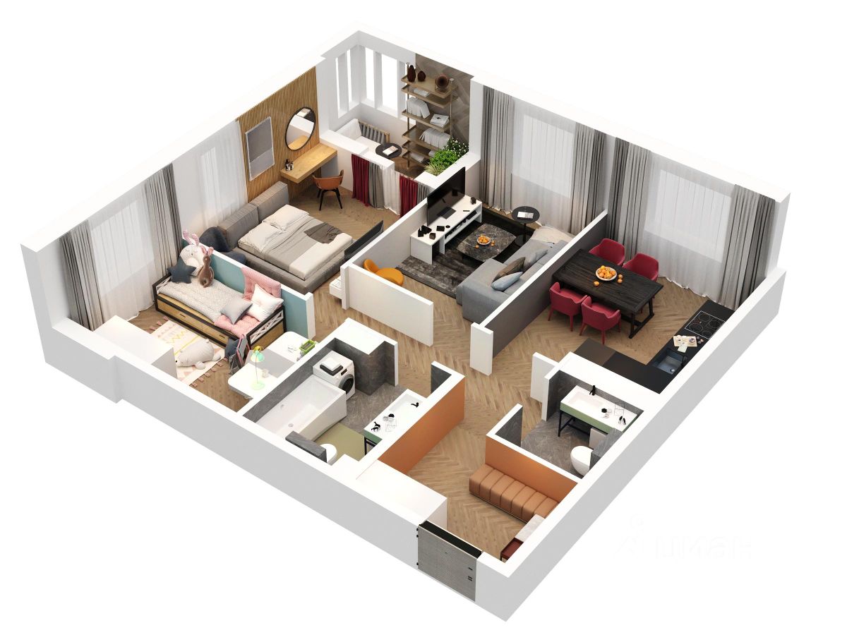 Классическая трехкомнатная квартира для большой семьи