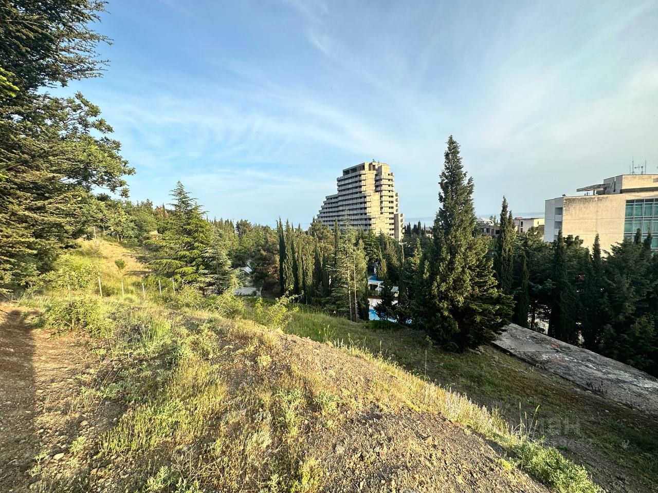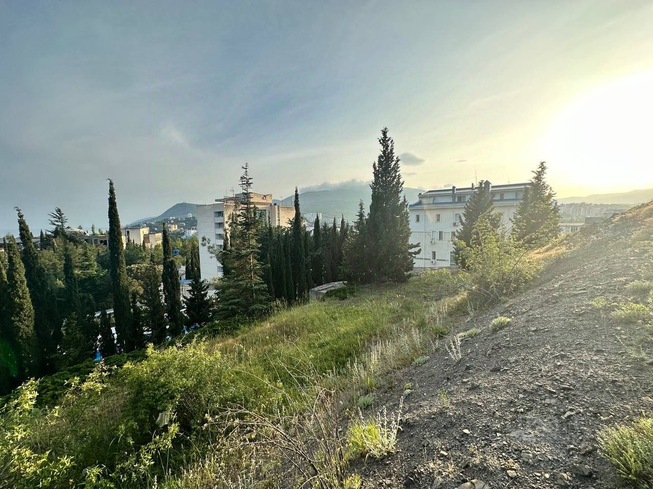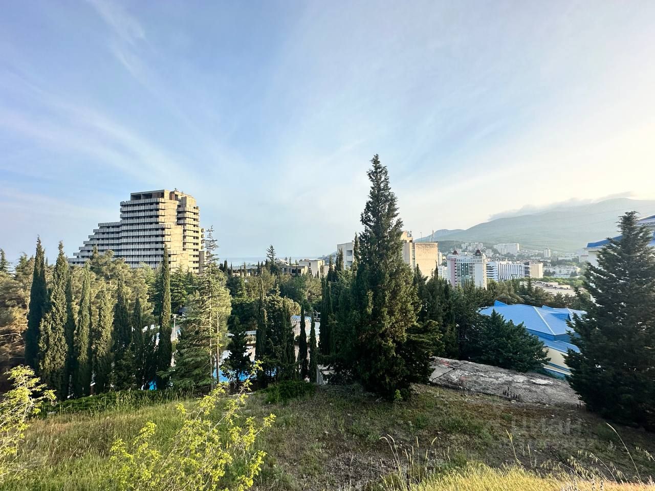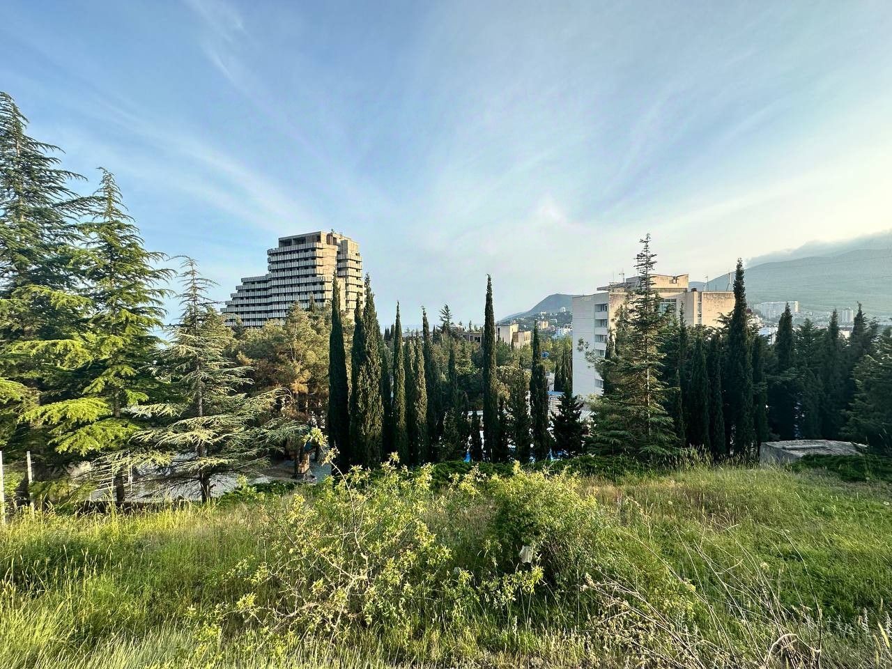 Участок расположен в г. Алушта в 300 м от моря, граничит с санатоиями Голубая Волна ( на фото здания под голубой крышей), Порто Марэ, рядом с центральным парком и набережной. К участку ведет асфальтированная дорога. Есть проэкт технологического присоединения к эл. сетям на 30 квт. Есть тех. условия и проплаченная точка подключения водопровода в 10 метрах от участка. Центральная канализация проходит в 10 м от участка. Участок имеет умеренный уклон. На участке растут хвойные деревья. Участок состоит из двух смежных участков по 7.5 соток каждый, но продаются они вместе, Если продаватьпраздельно, то цена увеличится. С участка открывается панррамный вид на г. Алушту, море и горы. Есть геологические заключения. Разрешеное использование ИЖС. Разрешено строительство д жилого дома до 3 этажей.