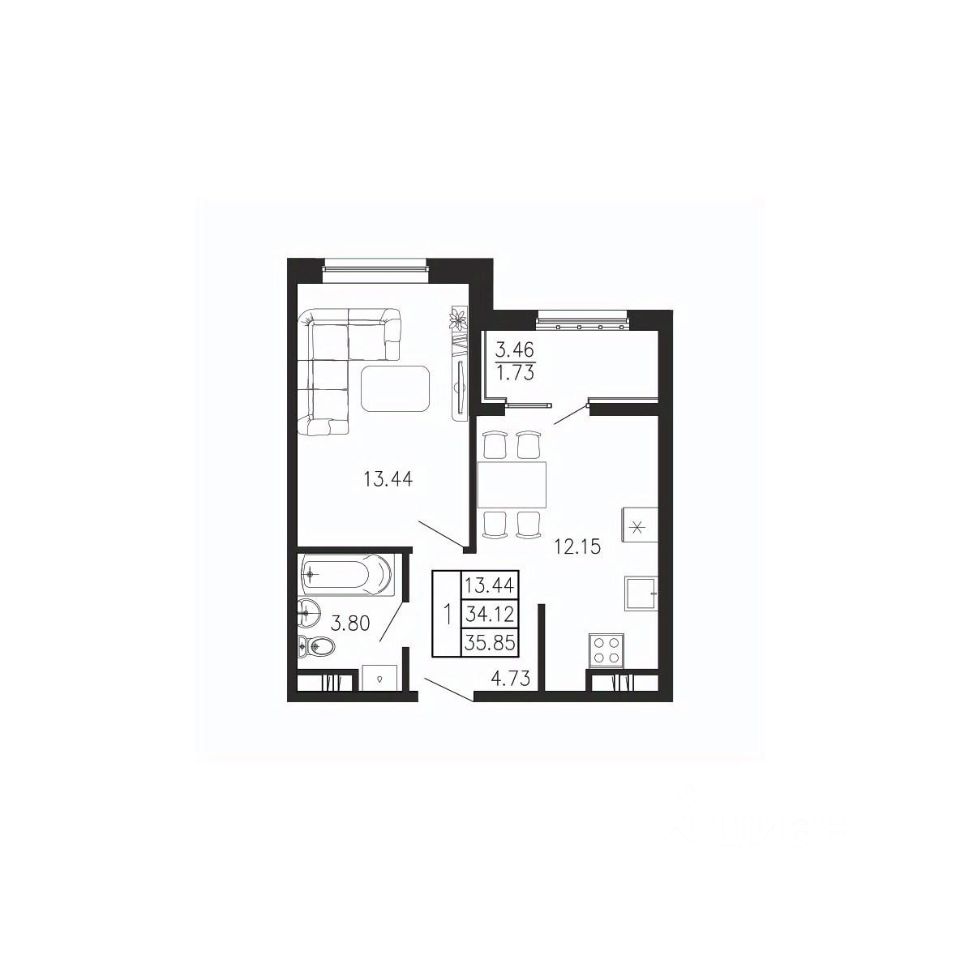 продам 1-к, Приморский7 349 250 ₽