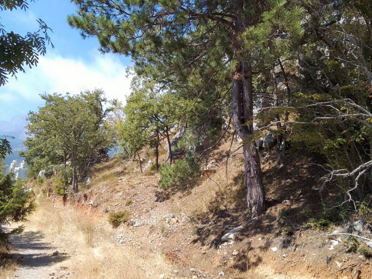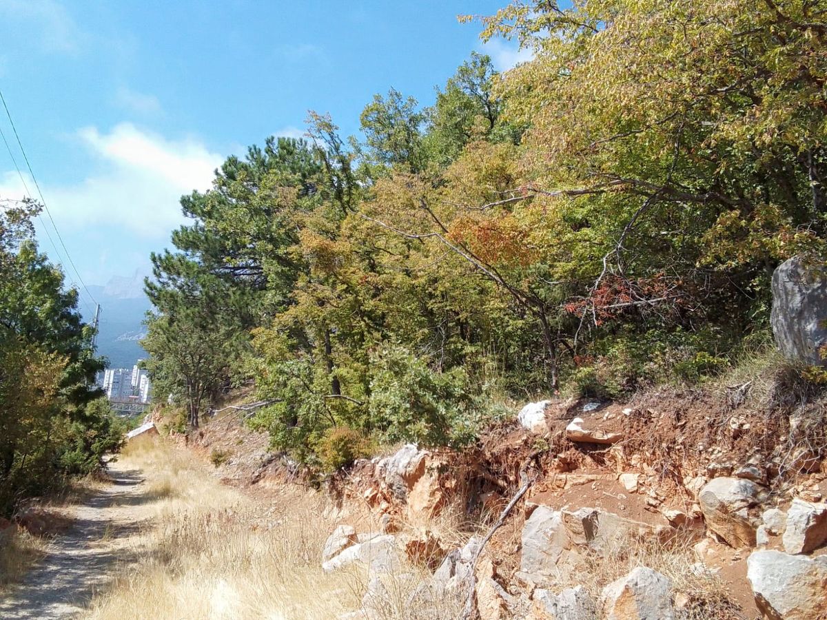 Продается земельный участок площадью 15 соток, расположенный по Севастопольскому шоссе в пгт. Гаспра, г.Ялта , ниже Южнобережного шоссе. С участка открывается неперекрываемый вид на Черное море и гряду Крымских гор.