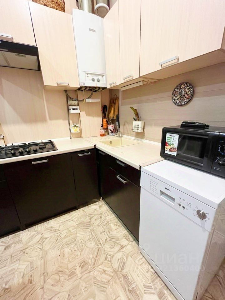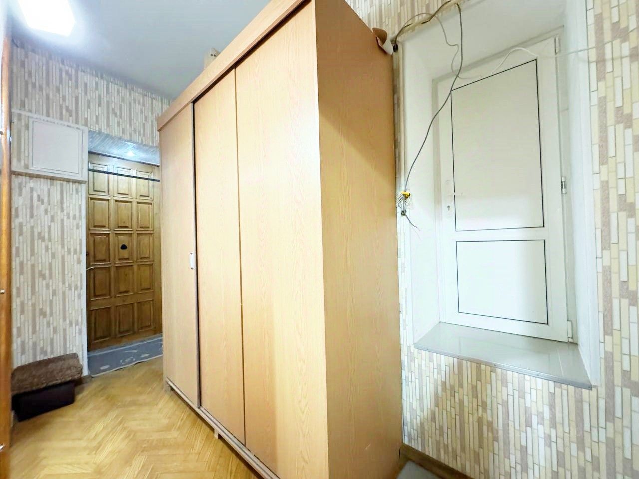 Фактически квартира представляют собой две квартиры. Одна квартира, состоит из кухни 10.8 м2, двух раздельных комнат 9.2 м2 и 18.2 м2, совмещённого санузла и коридора.