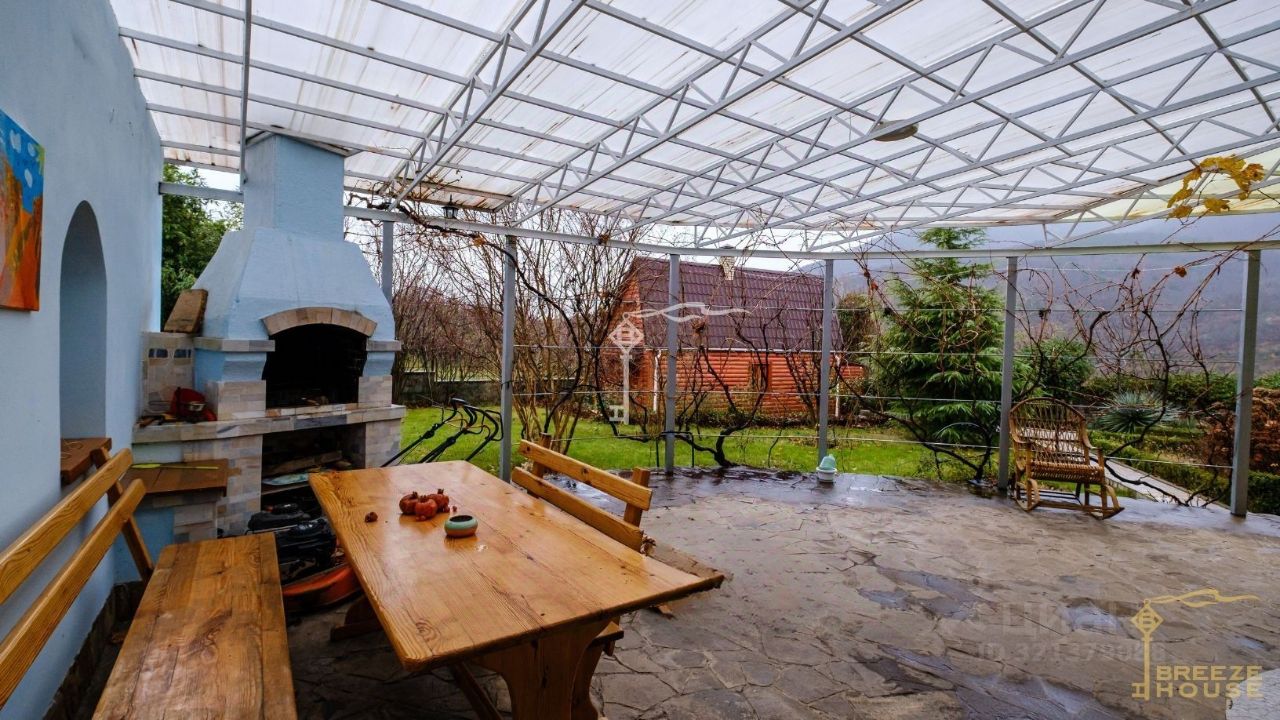 Рядом с летним домиком расположена крытая беседка с мангальной зоной, идеально подходящая для уютных встреч и BBQ на свежем воздухе. В беседке есть удобное кресло-качалка, где можно расслабиться, наслаждаясь природой и тишиной.