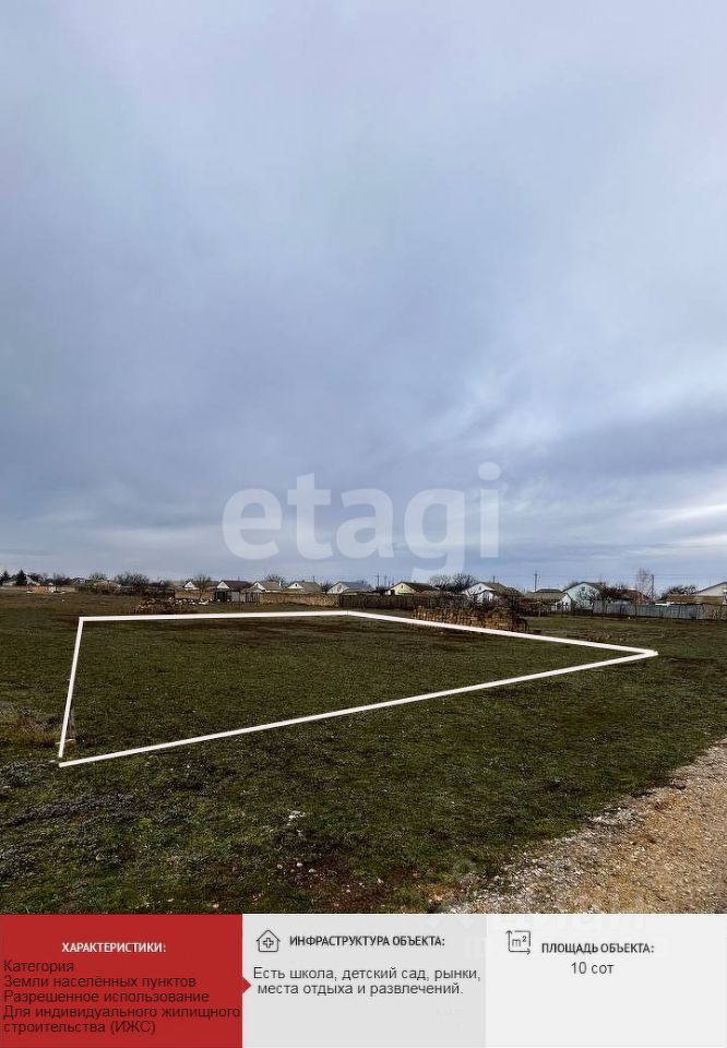 Продаётся земельный участок в границах села Столбовое, Сакского района, Республики Крым, общей площадью 10 соток, идеально подходящий для постройки жилого дома!
