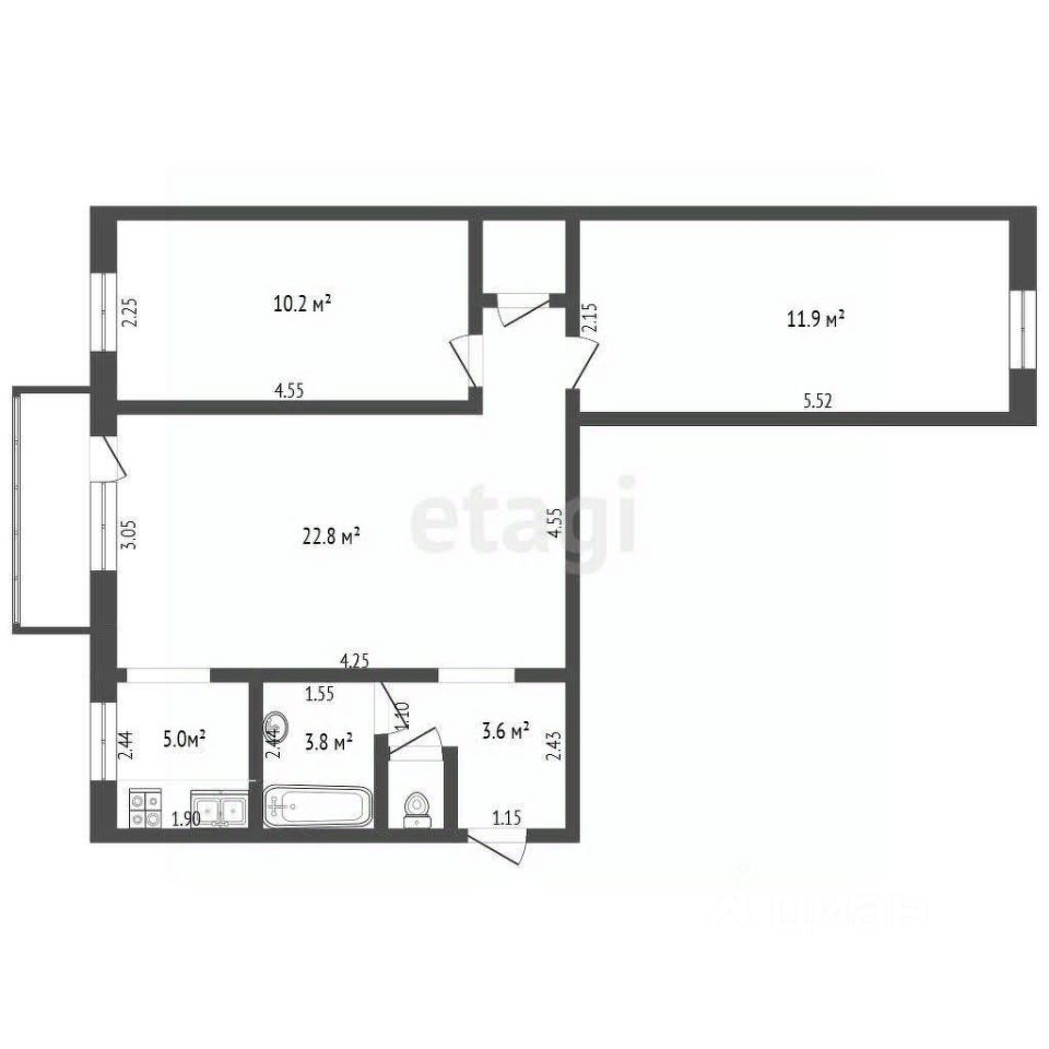 Общей площадью 53,7 квадратных метров. Изолированные две комнаты. Есть большой застекленный балкон. Окна выходят во двор и на улицу. Раздельный санузел. Перепланировка узаконенная. Так же очень уютная прихожая.Квартира очень теплая и светлая, есть автономное отопление, окна пластиковые. Стоят все счетчики. В квартире остается все что на фото.